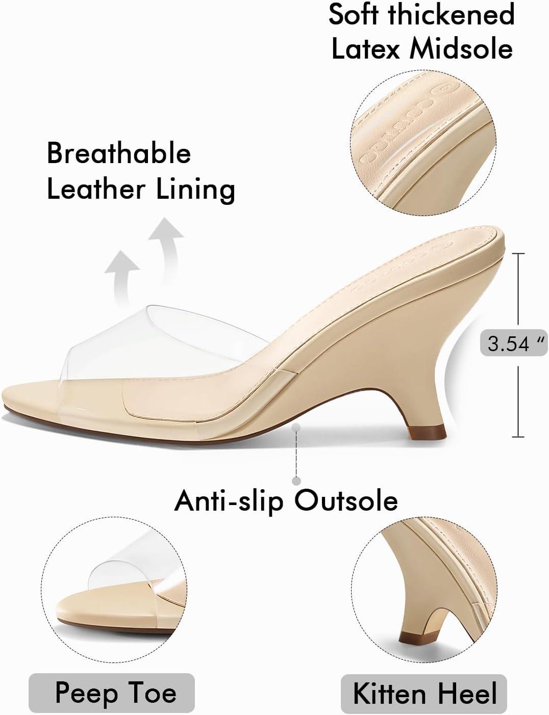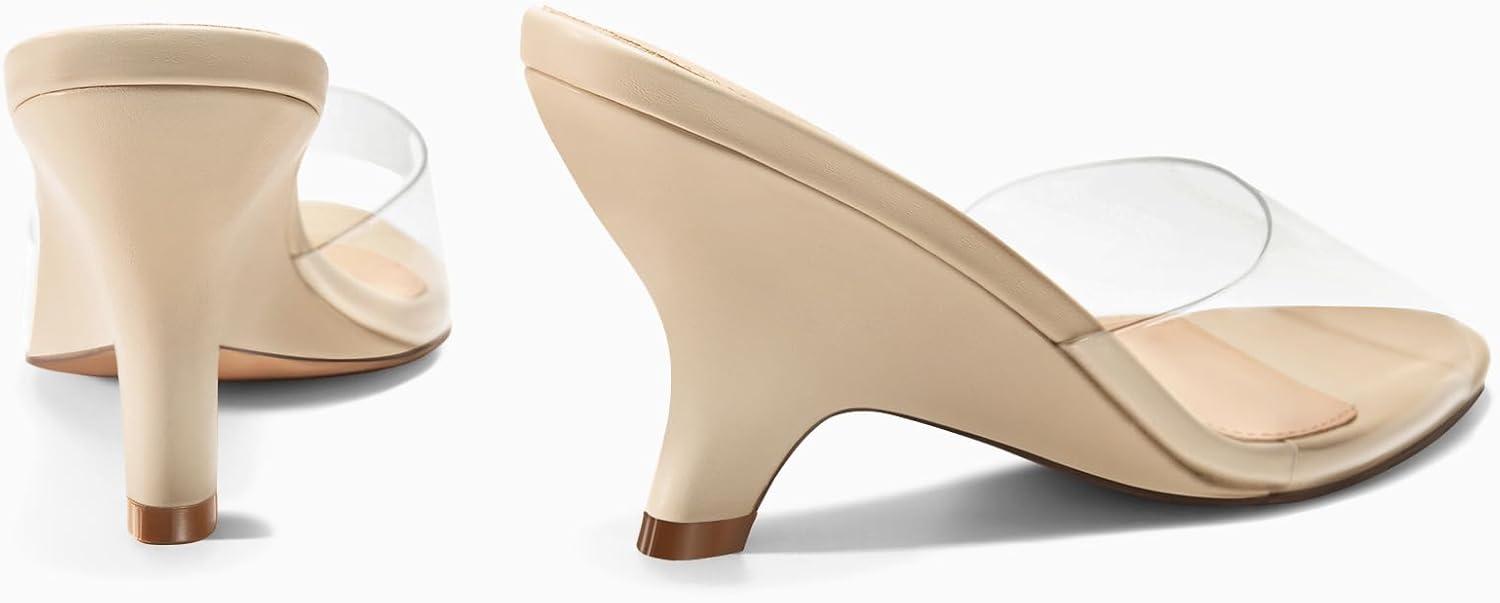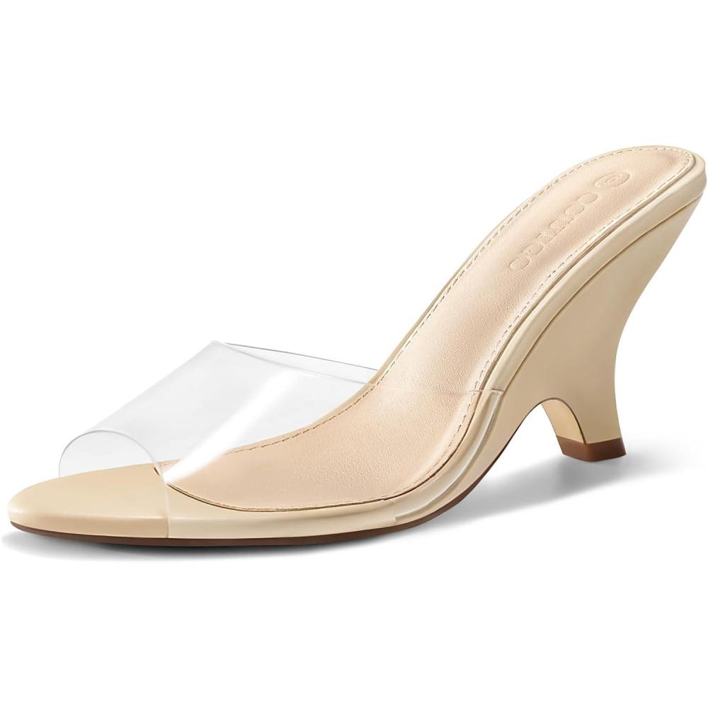 Coutgo Womens Wedge Heels Sandals Pointed Open Toe Slide Sandals Slip On Backless Summer Dress Shoes(Transparent)