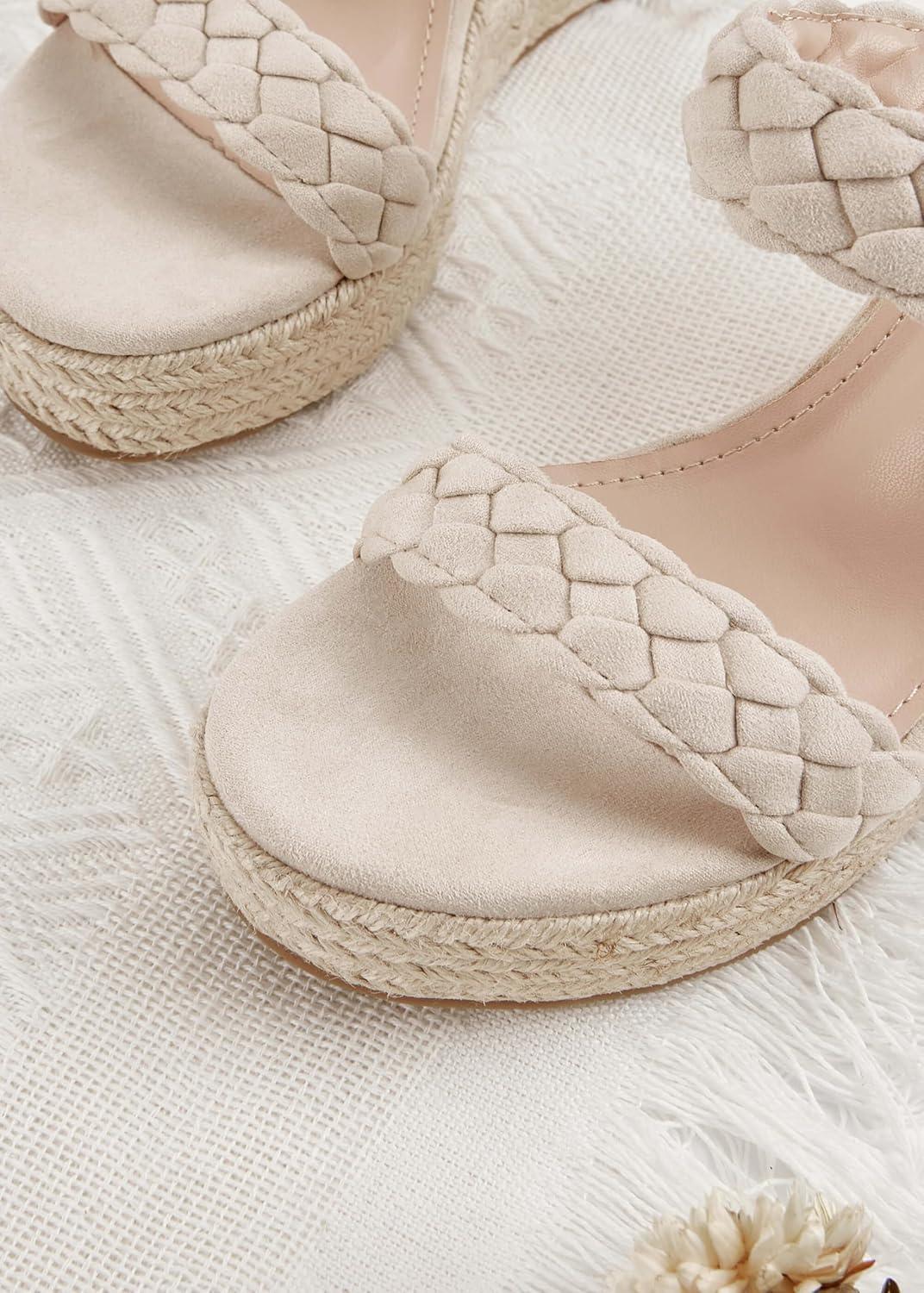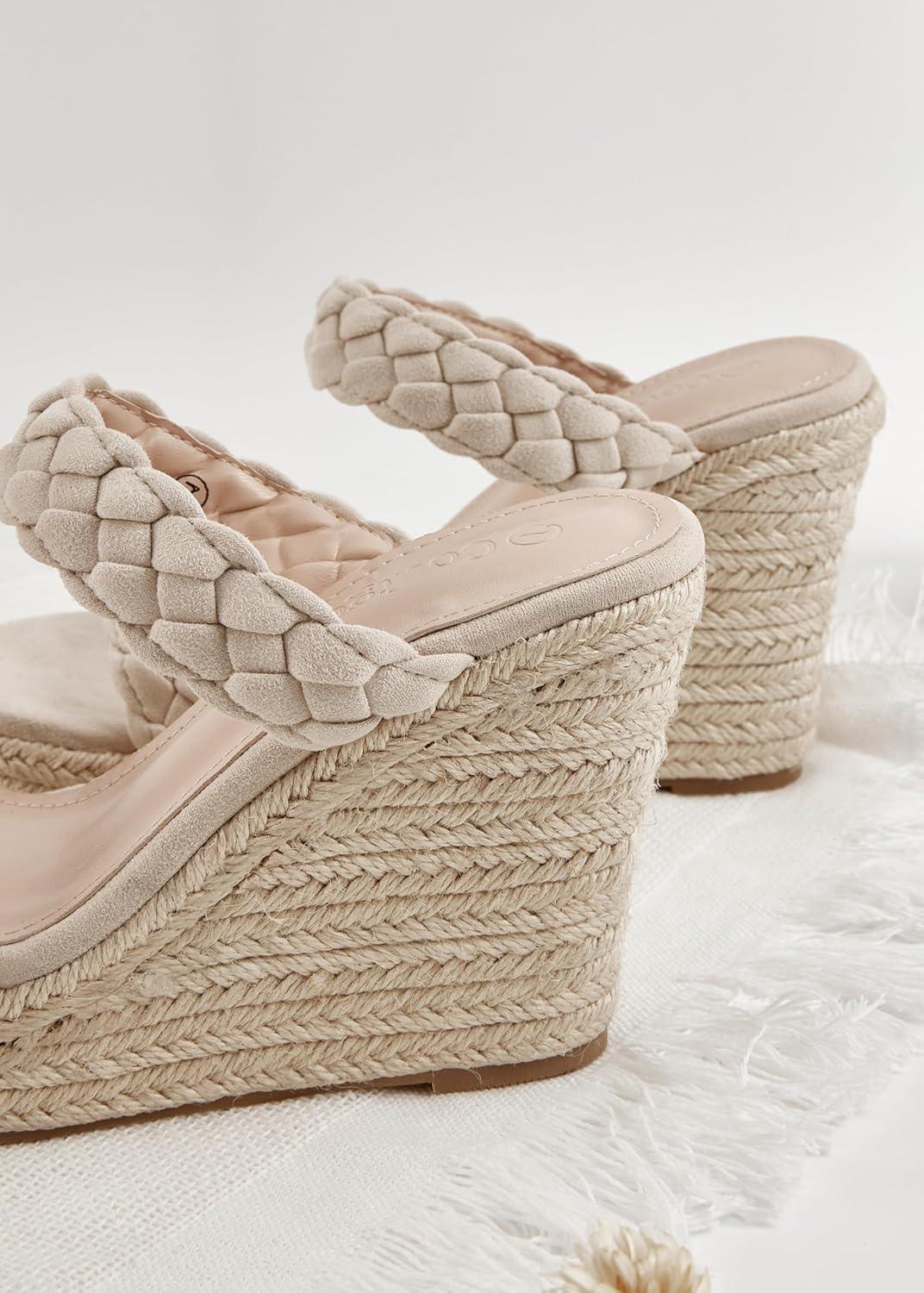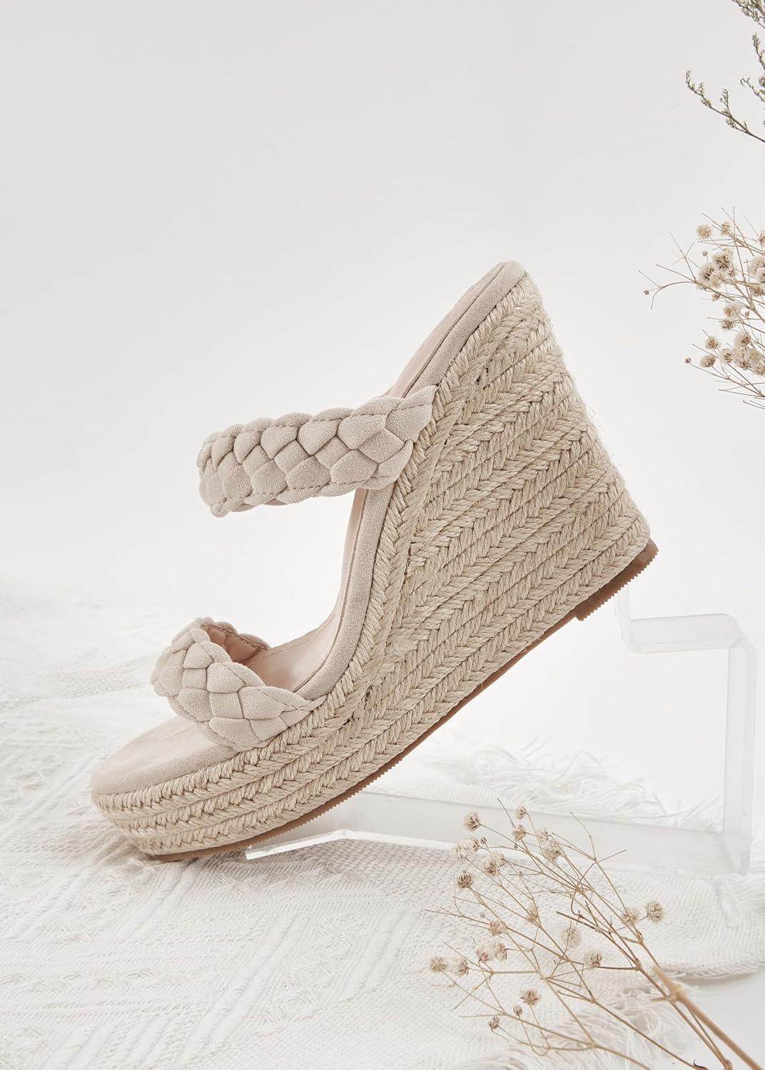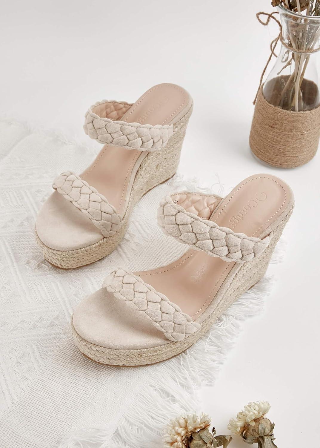 Coutgo Womens Wedge Platform Sandals Espadrilles Two Strap Woven Slip On Summer Cute Slide Sandals(Beige)