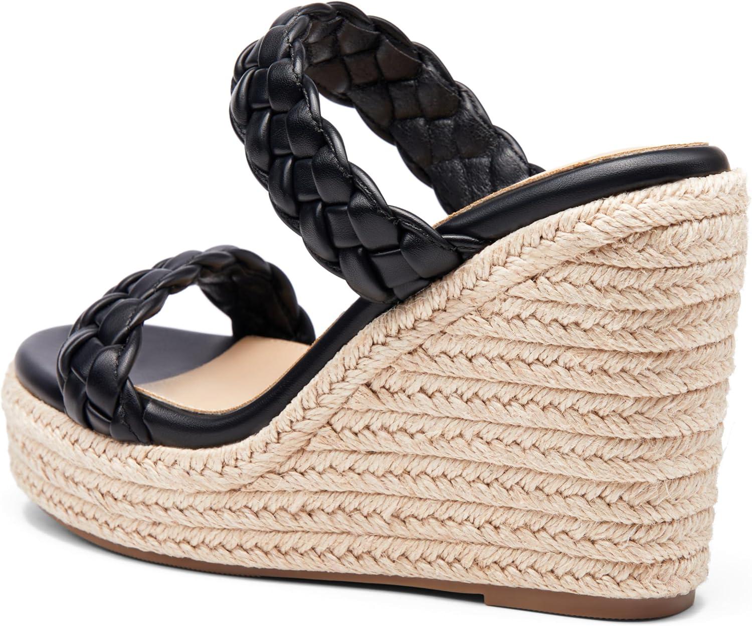 Coutgo Womens Wedge Platform Sandals Espadrilles Two Strap Woven Slip On Summer Cute Slide Sandals(Cool Black)
