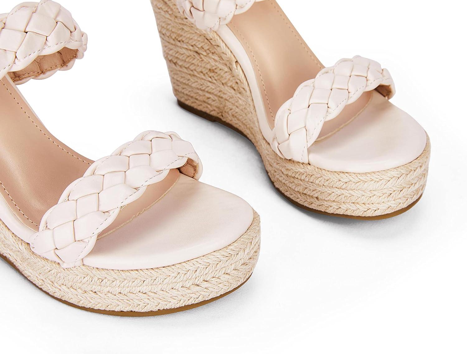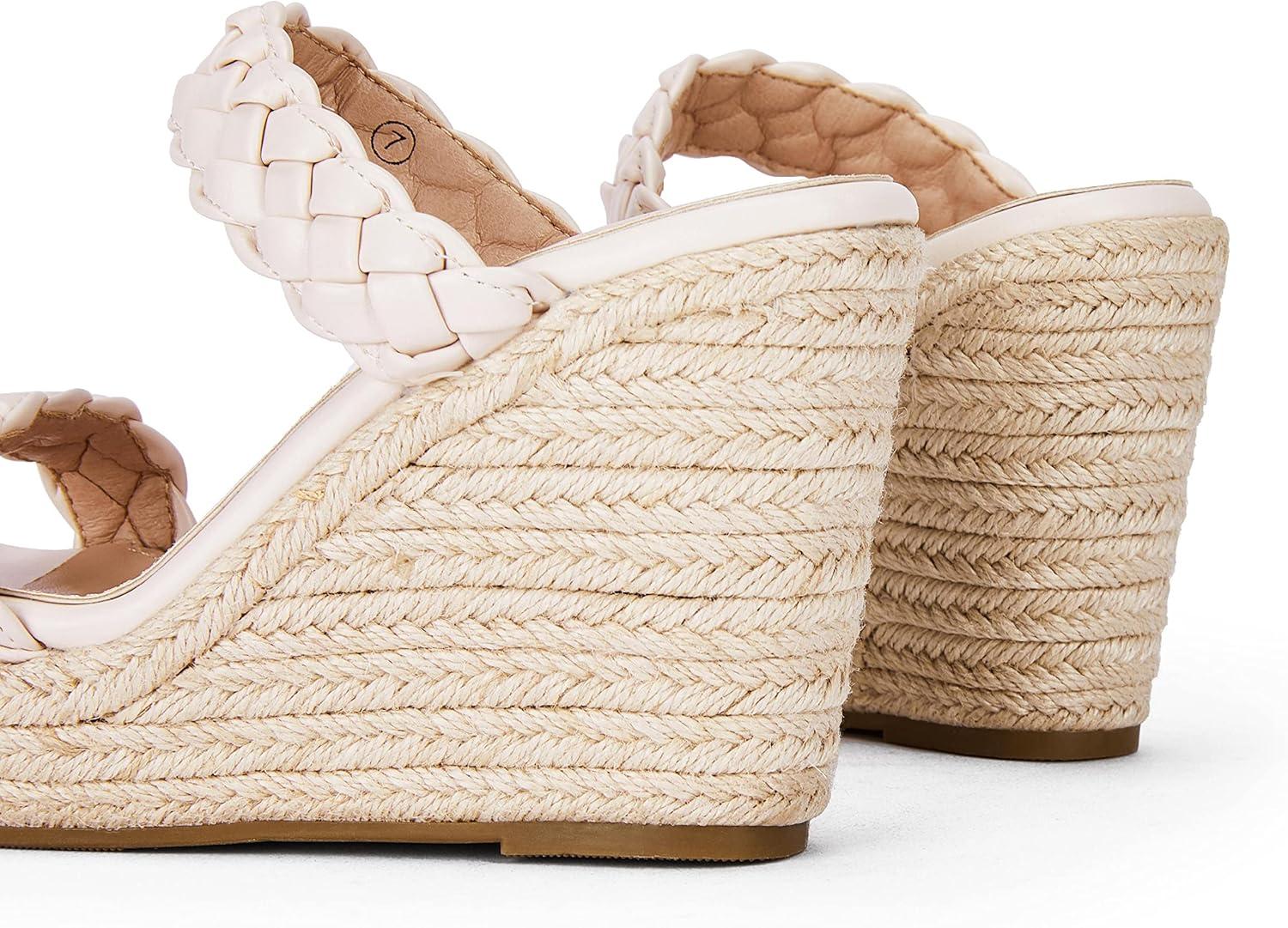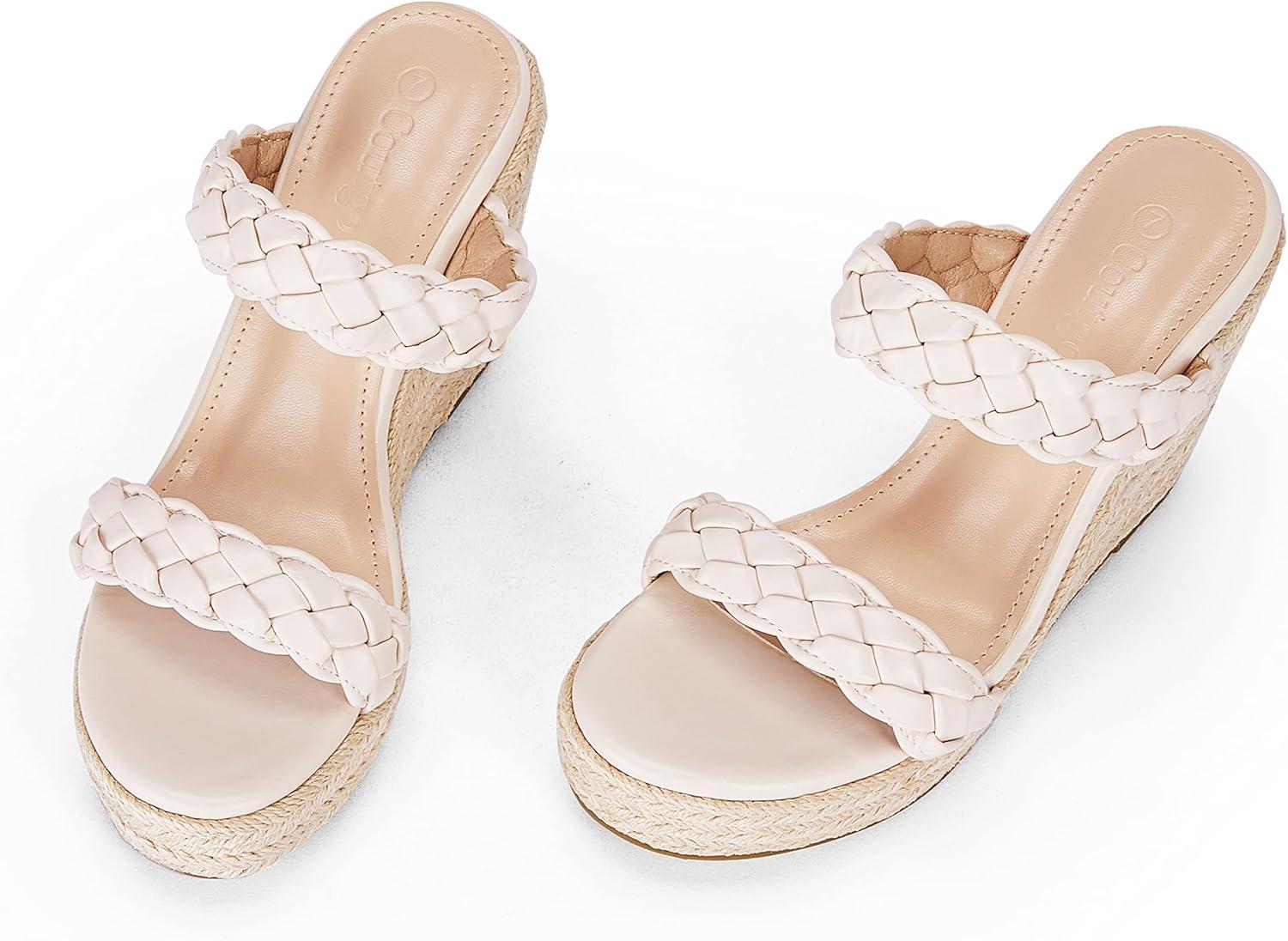 Coutgo Womens Wedge Platform Sandals Espadrilles Two Strap Woven Slip On Summer Cute Slide Sandals(Nude)