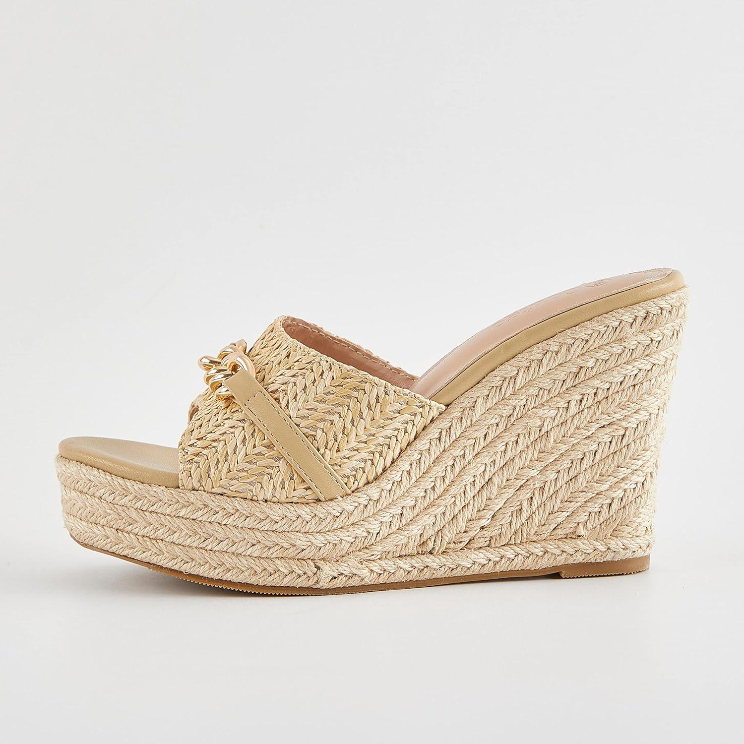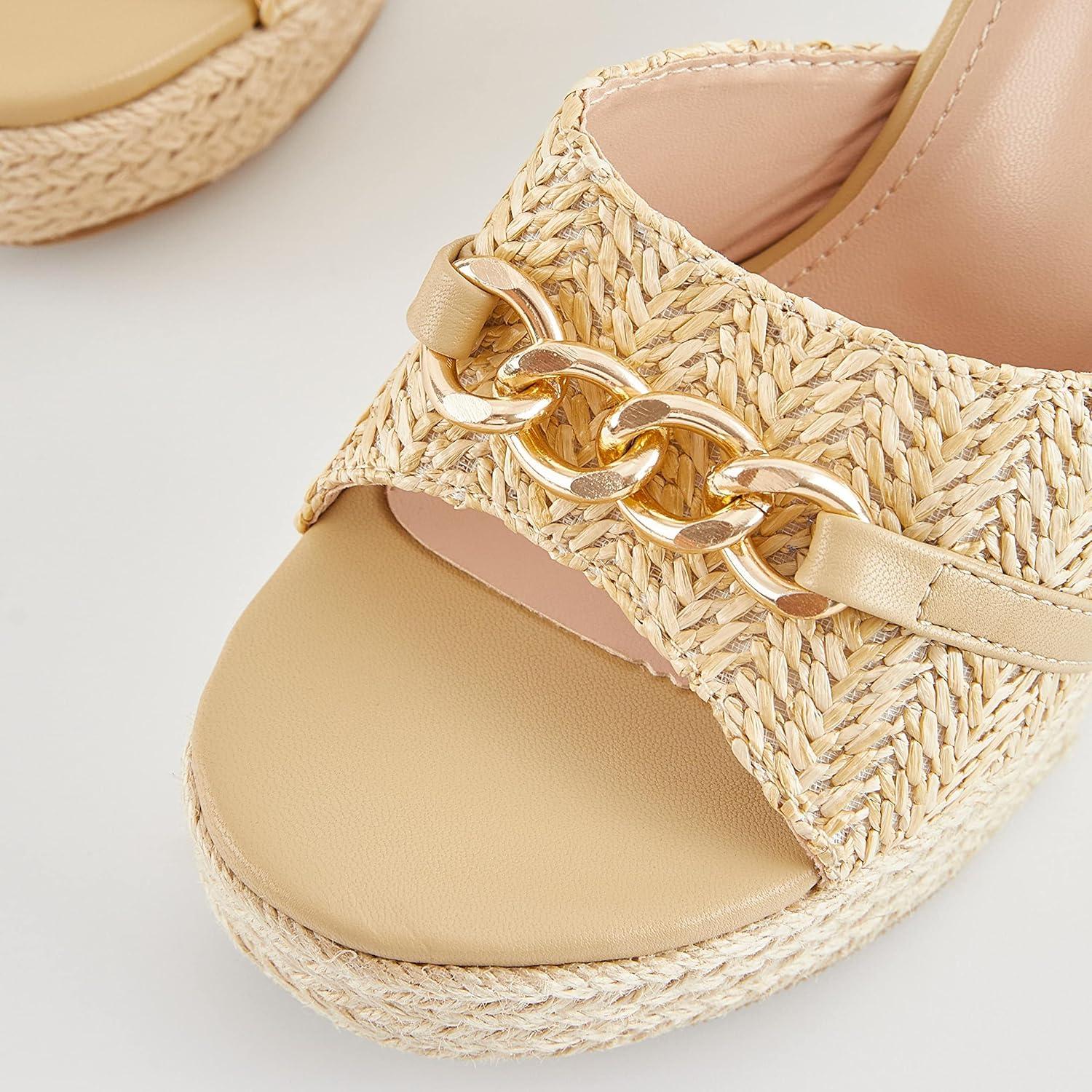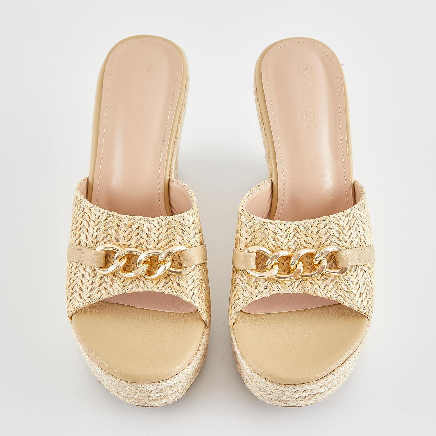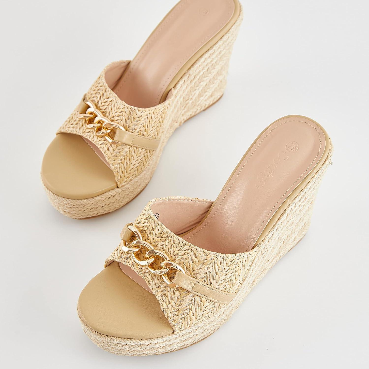 Coutgo Women’s Wedge Sandals Platform Espadrille Heel Chain Slip On Casual Summer Slides(Apricot)