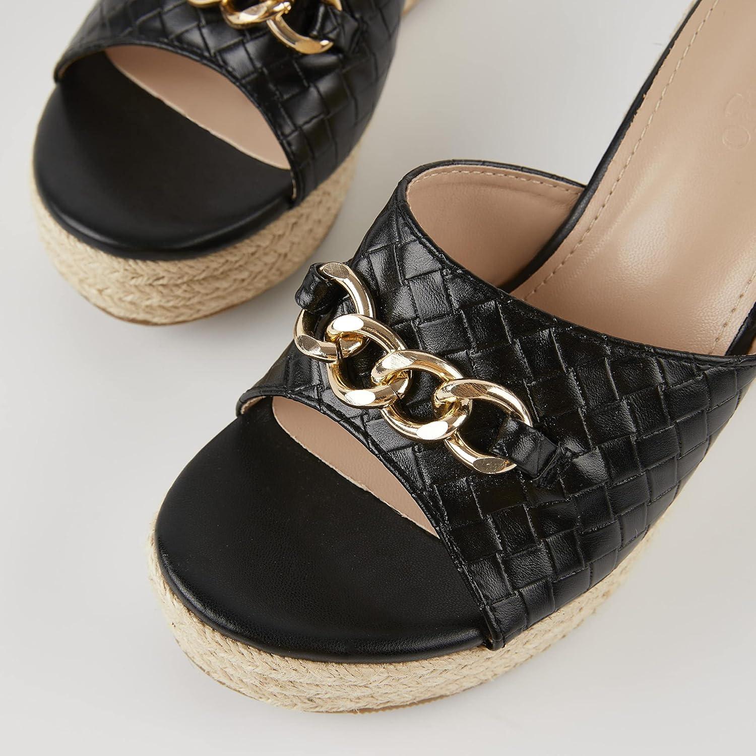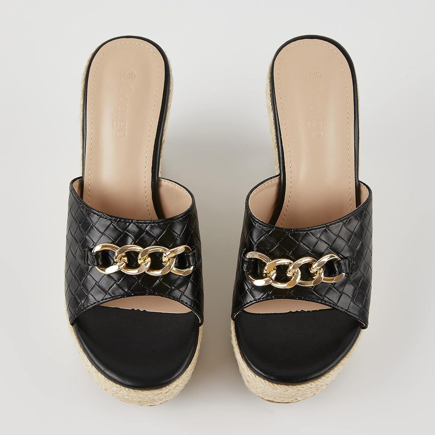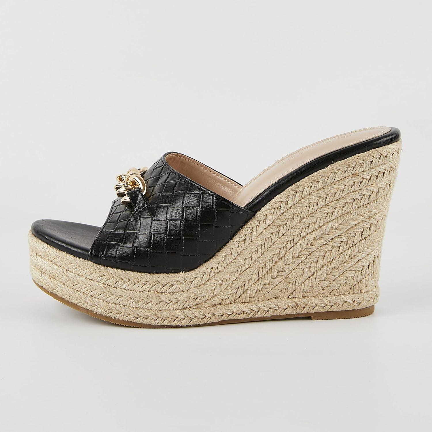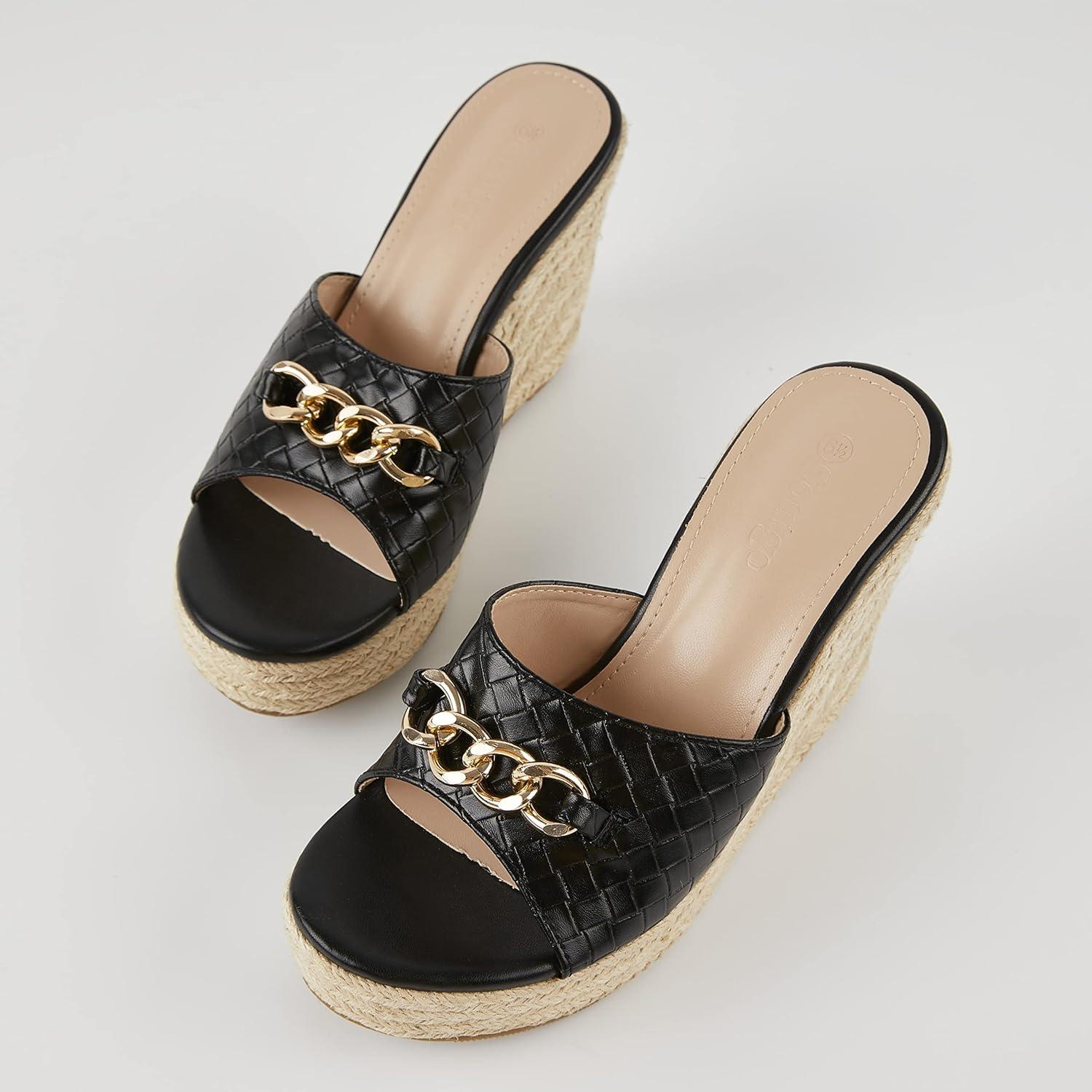 Coutgo Women’s Wedge Sandals Platform Espadrille Heel Chain Slip On Casual Summer Slides(Black)
