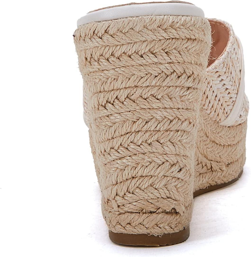 Coutgo Women’s Wedge Sandals Platform Espadrille Heel Chain Slip On Casual Summer Slides(Creamy-white)