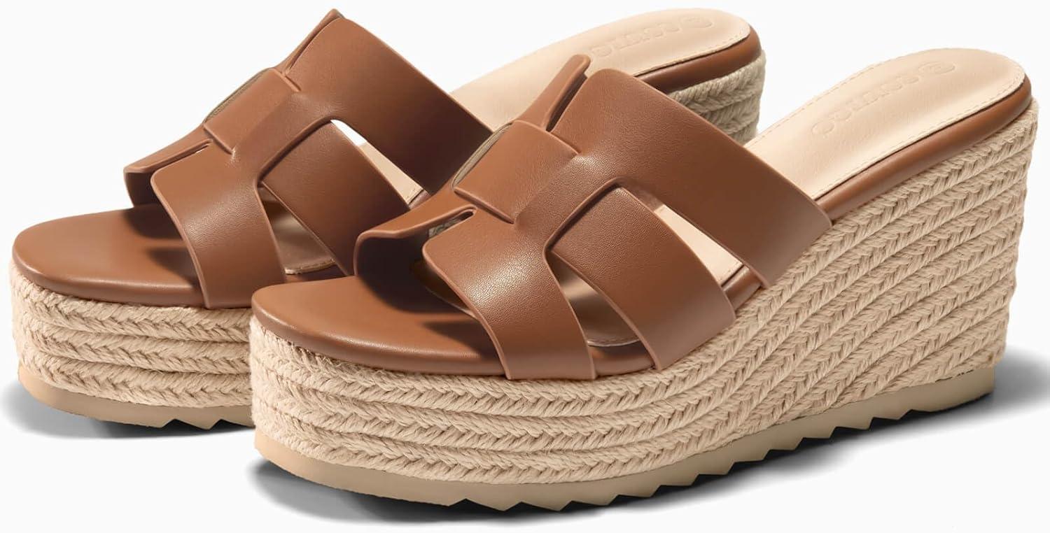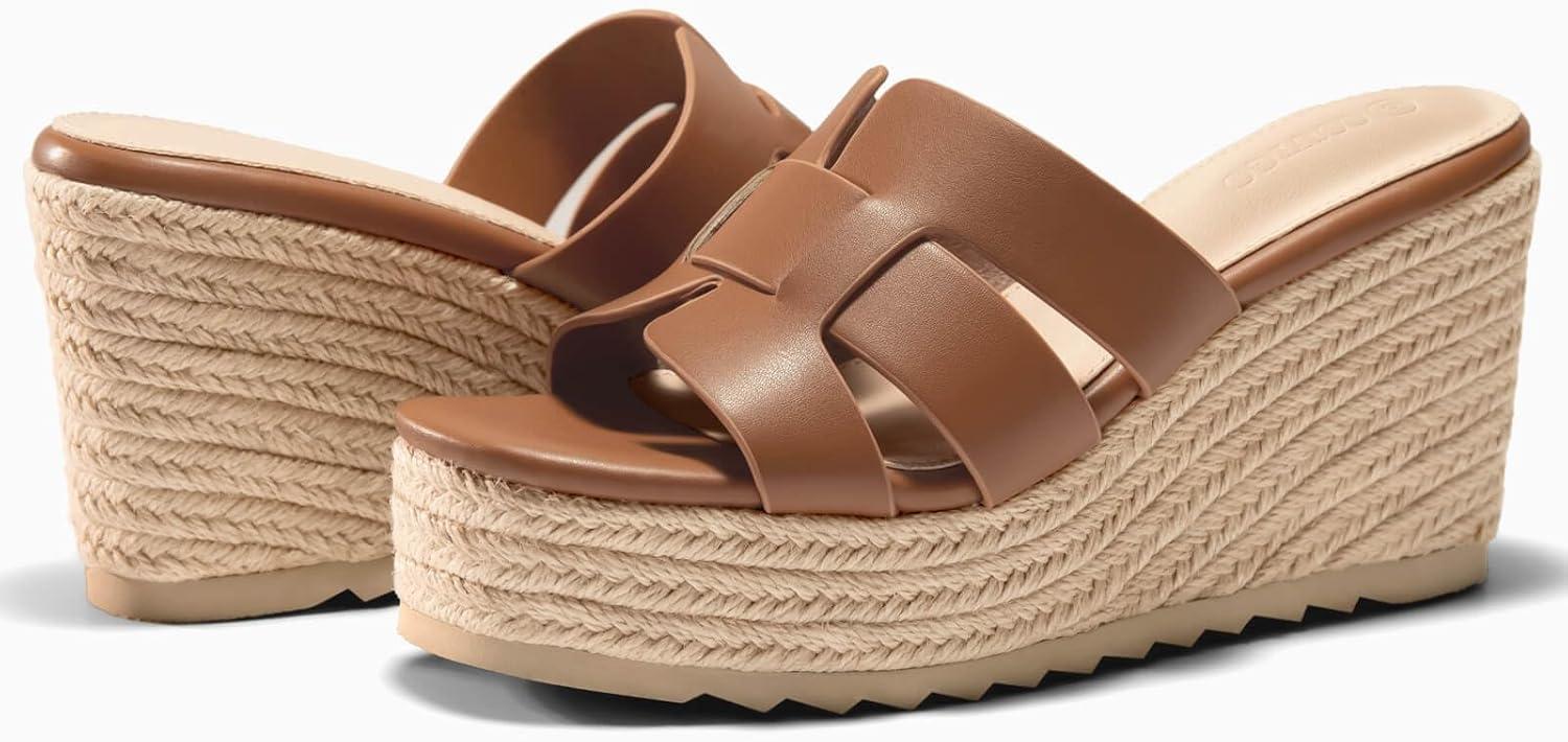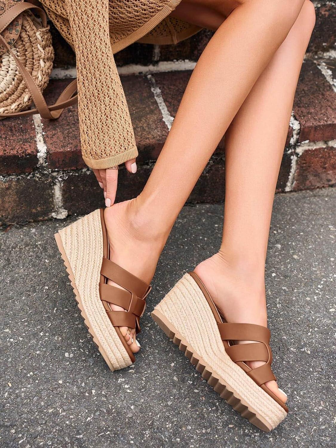 Coutgo Women’s Wedge Sandals Platform Espadrille Heels Open Toe Strappy Slip On Casual Summer Slide Shoes(Brown)
