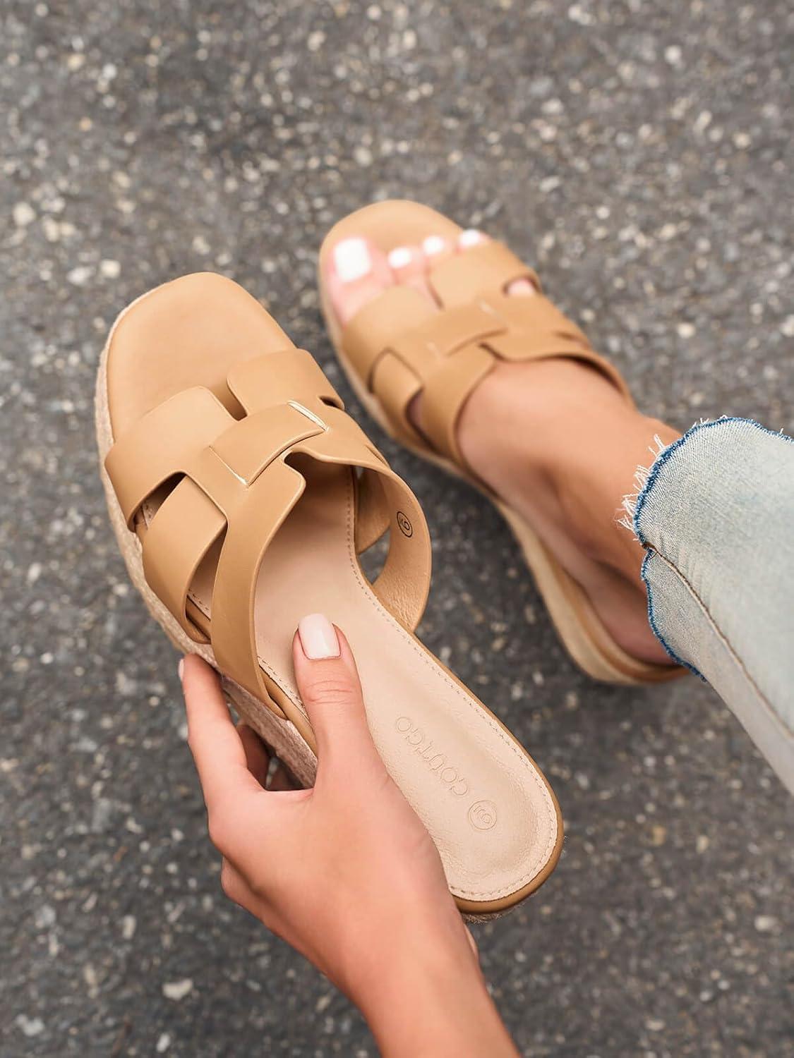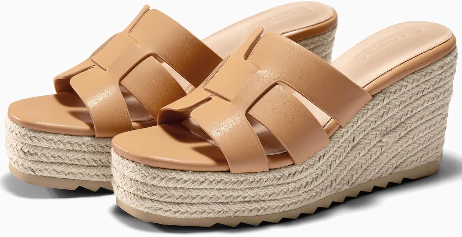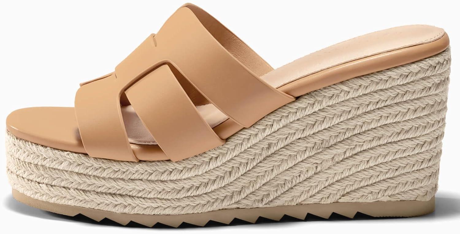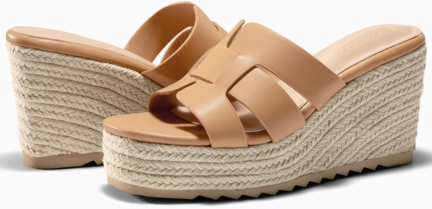 Coutgo Women’s Wedge Sandals Platform Espadrille Heels Open Toe Strappy Slip On Casual Summer Slide Shoes(Light Brown)