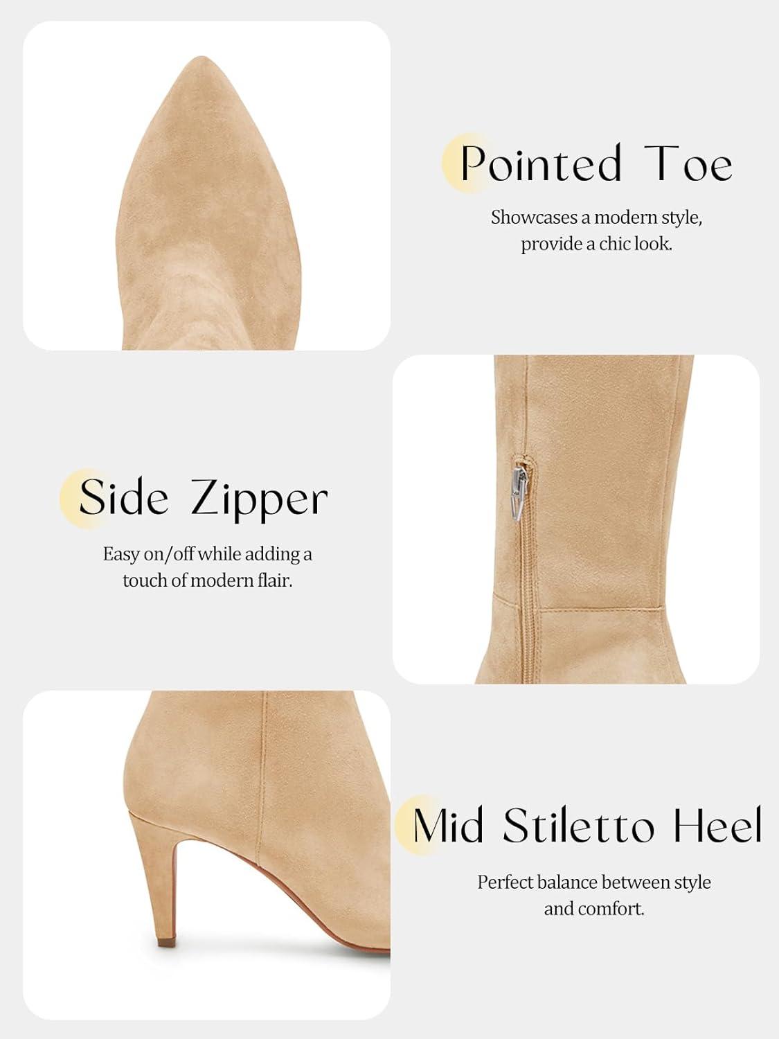 Coutgo Womens Wide Calf Knee High Boots Stiletto High Heel Pointed Toe Side Zipper Suede Long Boots Winter Shoes(Light Brown)