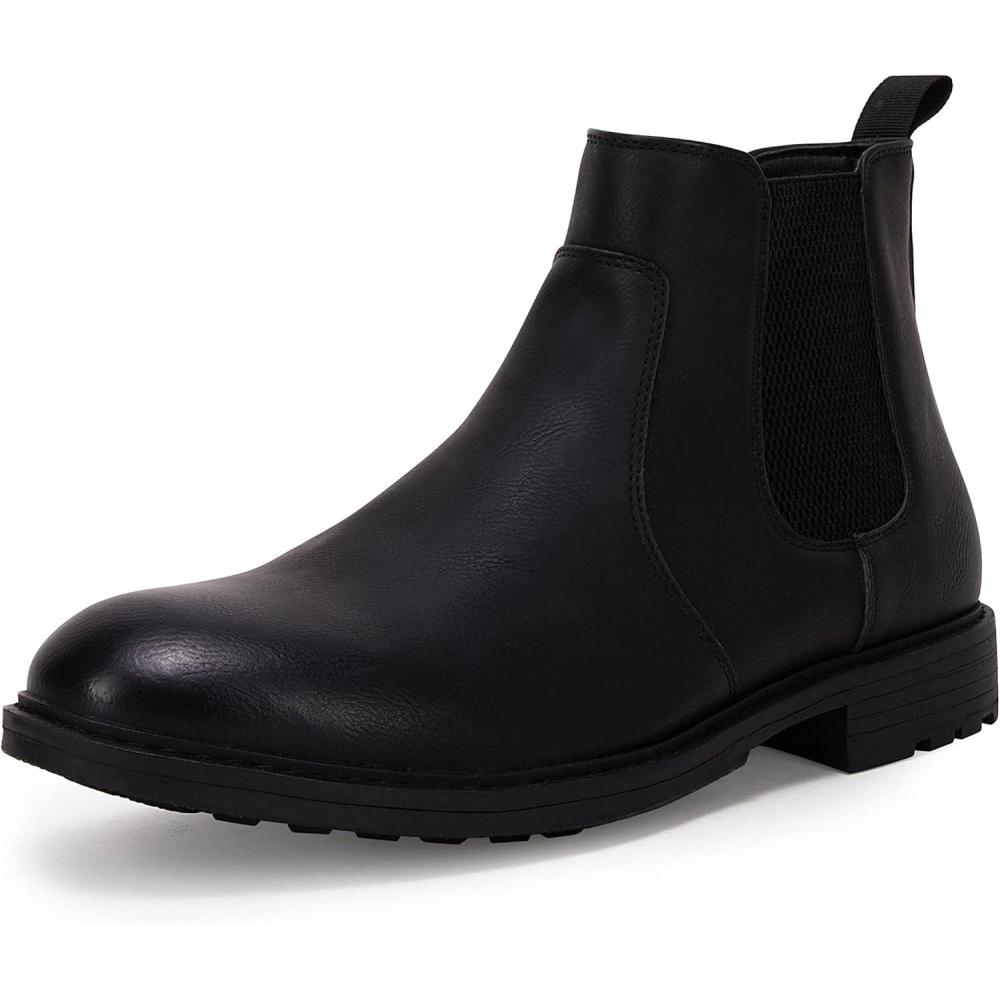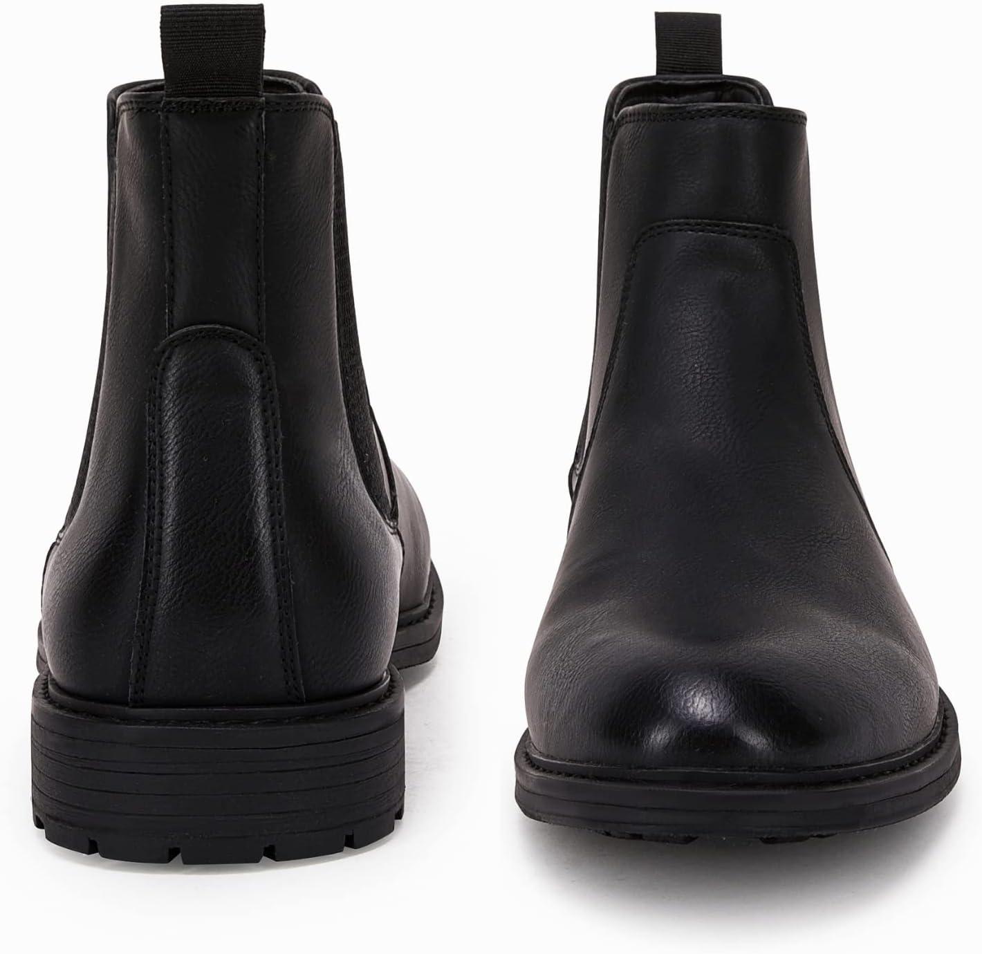 Men’s Ankle Boots Chelsea Round Toe Slip on Waterproof Faux Leather Classic Dress Booties for Men(Black)