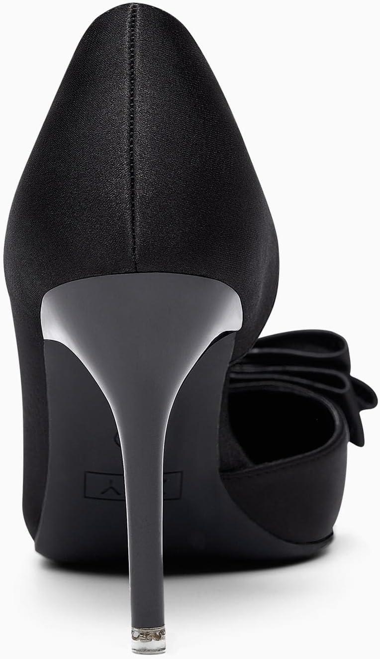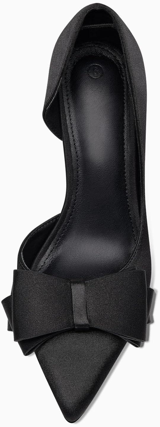 Womens Bow Heels Closed Pointed Toe Dress Shoes Stiletto Slip on Wedding Pumps(Black-satin)