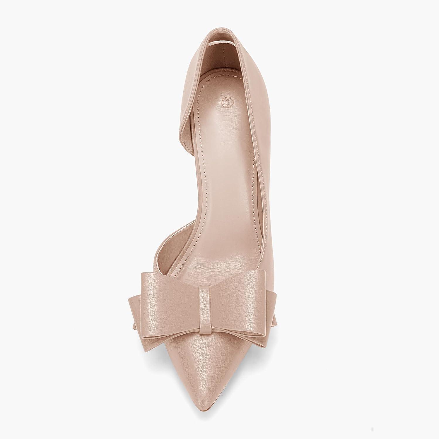 Womens Bow Heels Closed Pointed Toe Dress Shoes Stiletto Slip on Wedding Pumps(Nude)