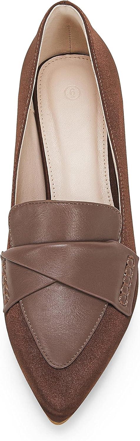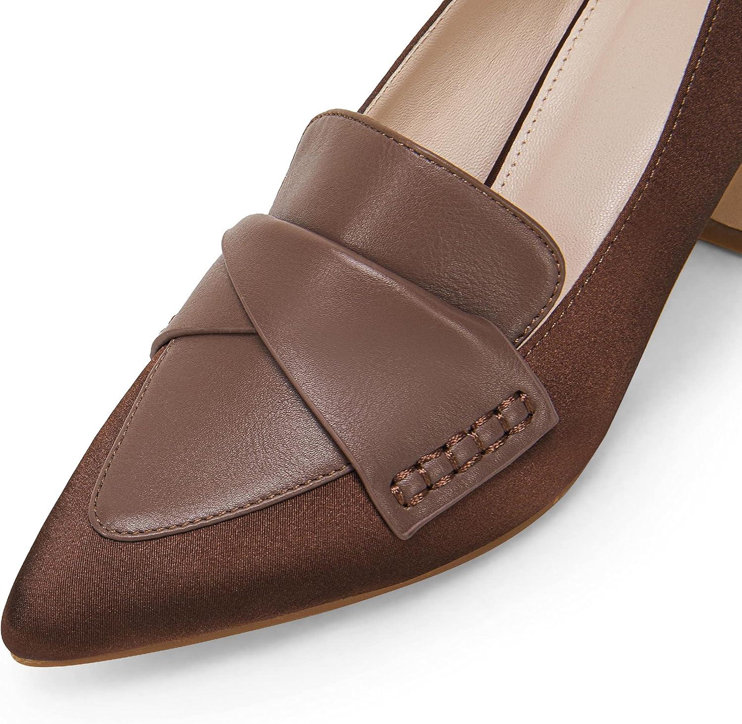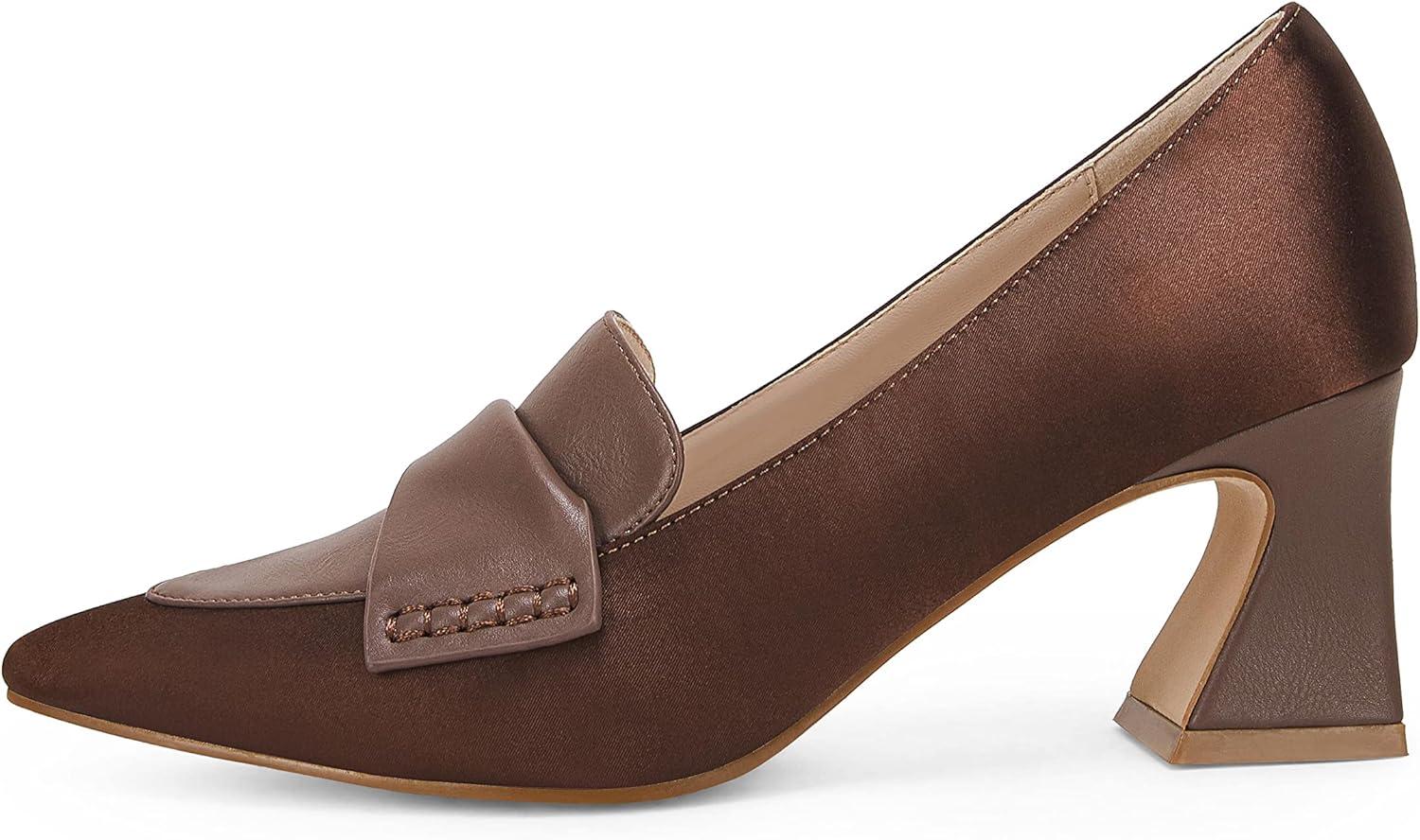 Women’s Chunky Block Low Heels Pumps Stitching Retro Work Office Dress Shoes(Dark Brown)