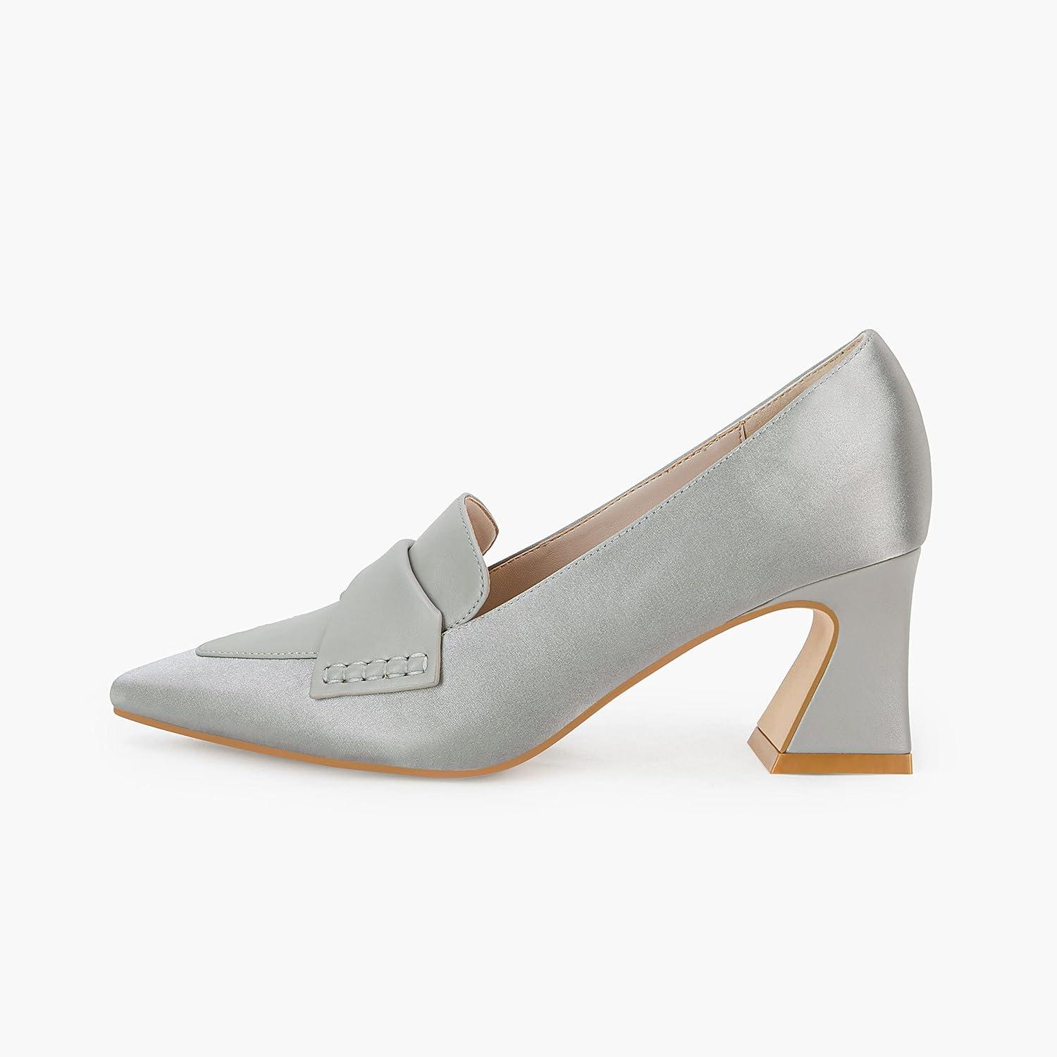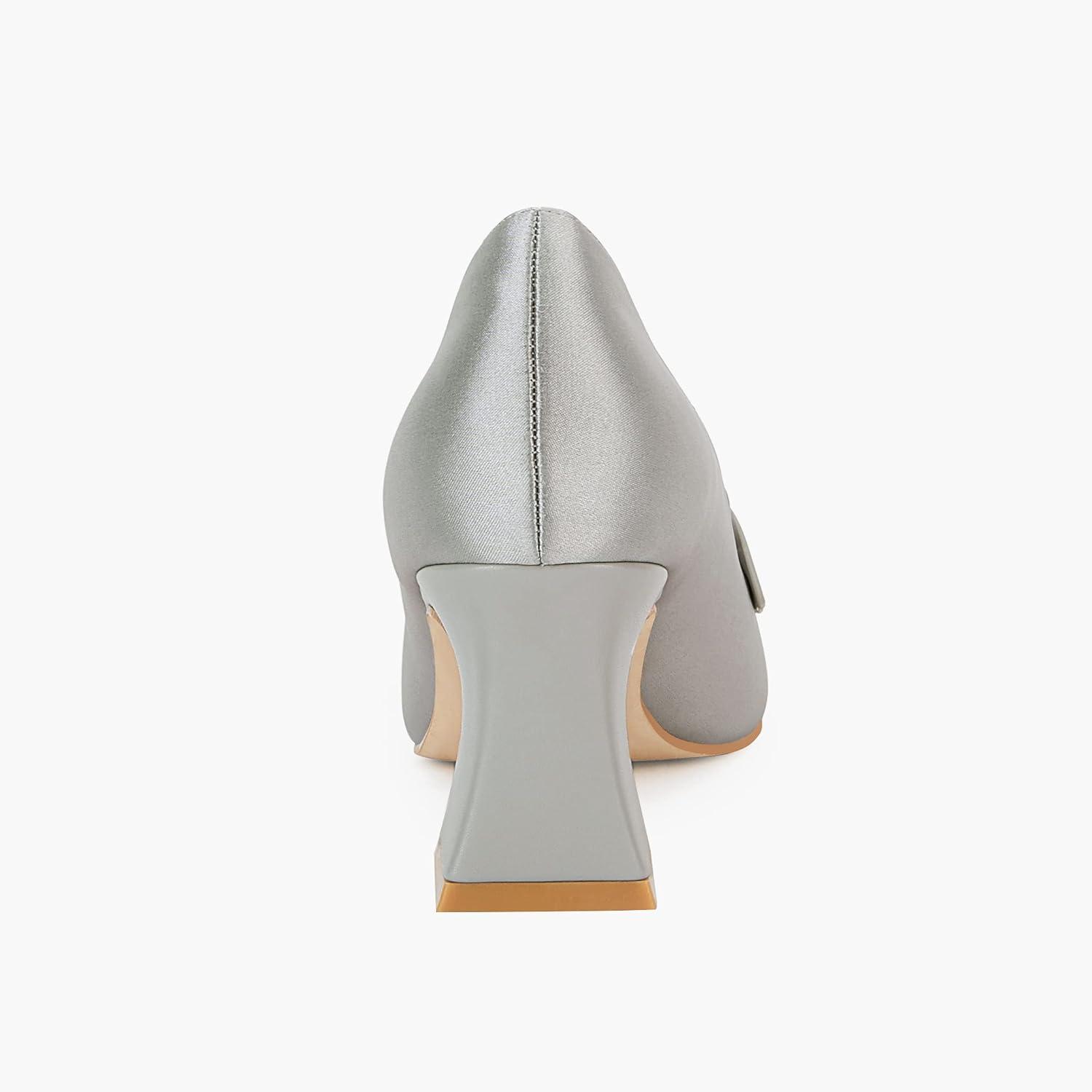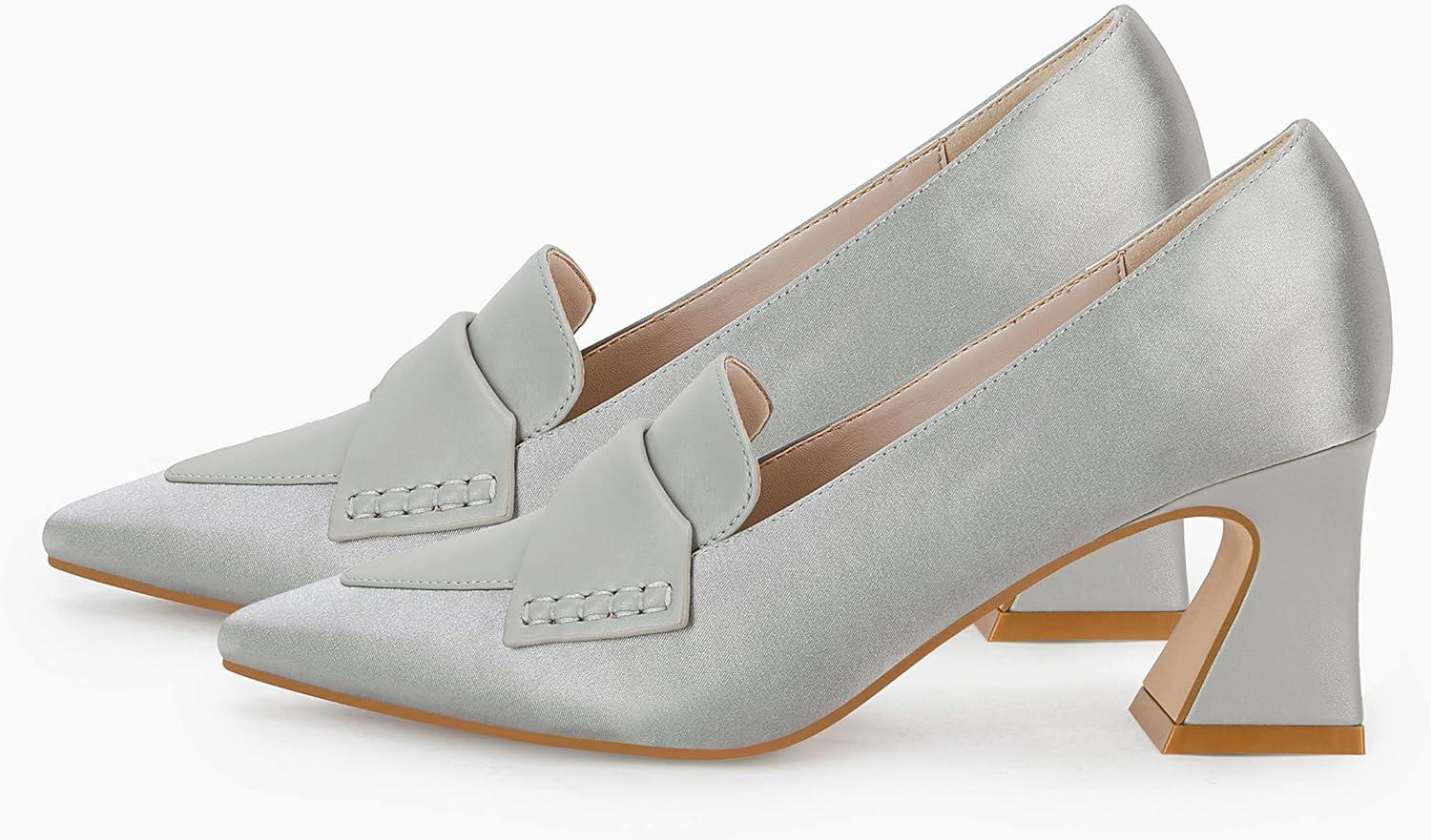 Women’s Chunky Block Low Heels Pumps Stitching Retro Work Office Dress Shoes(Grey)