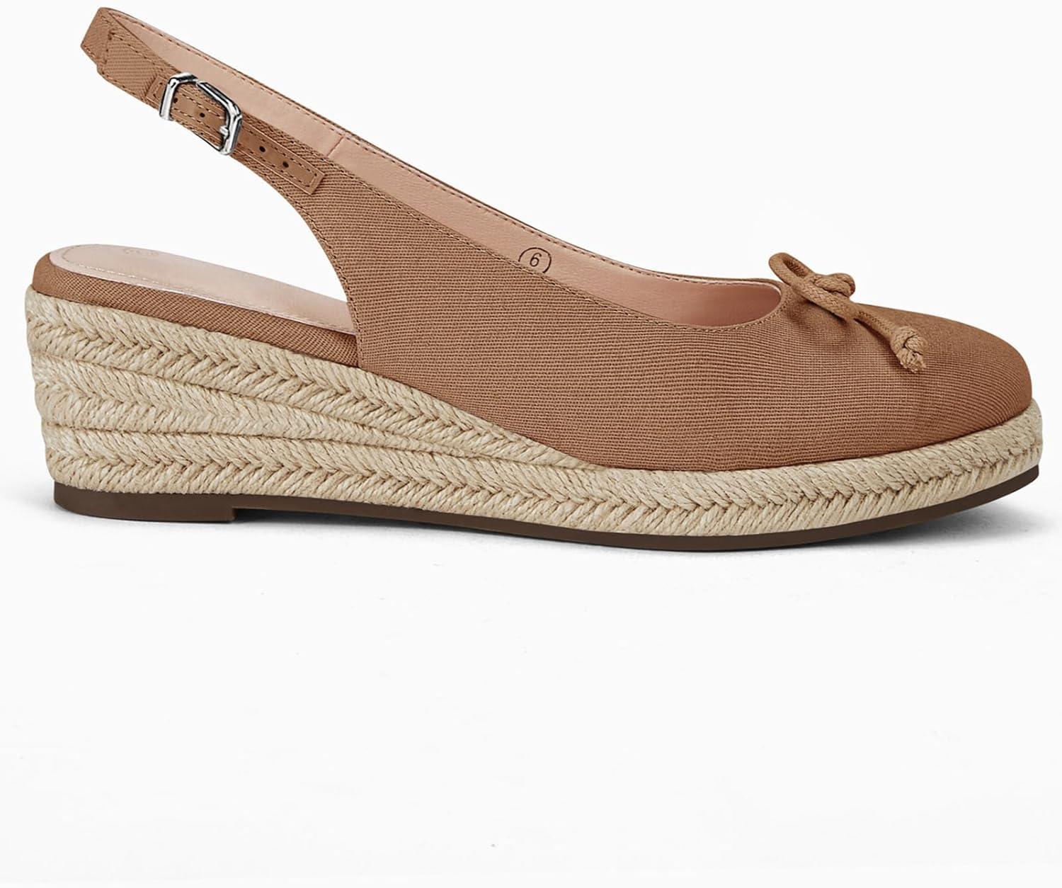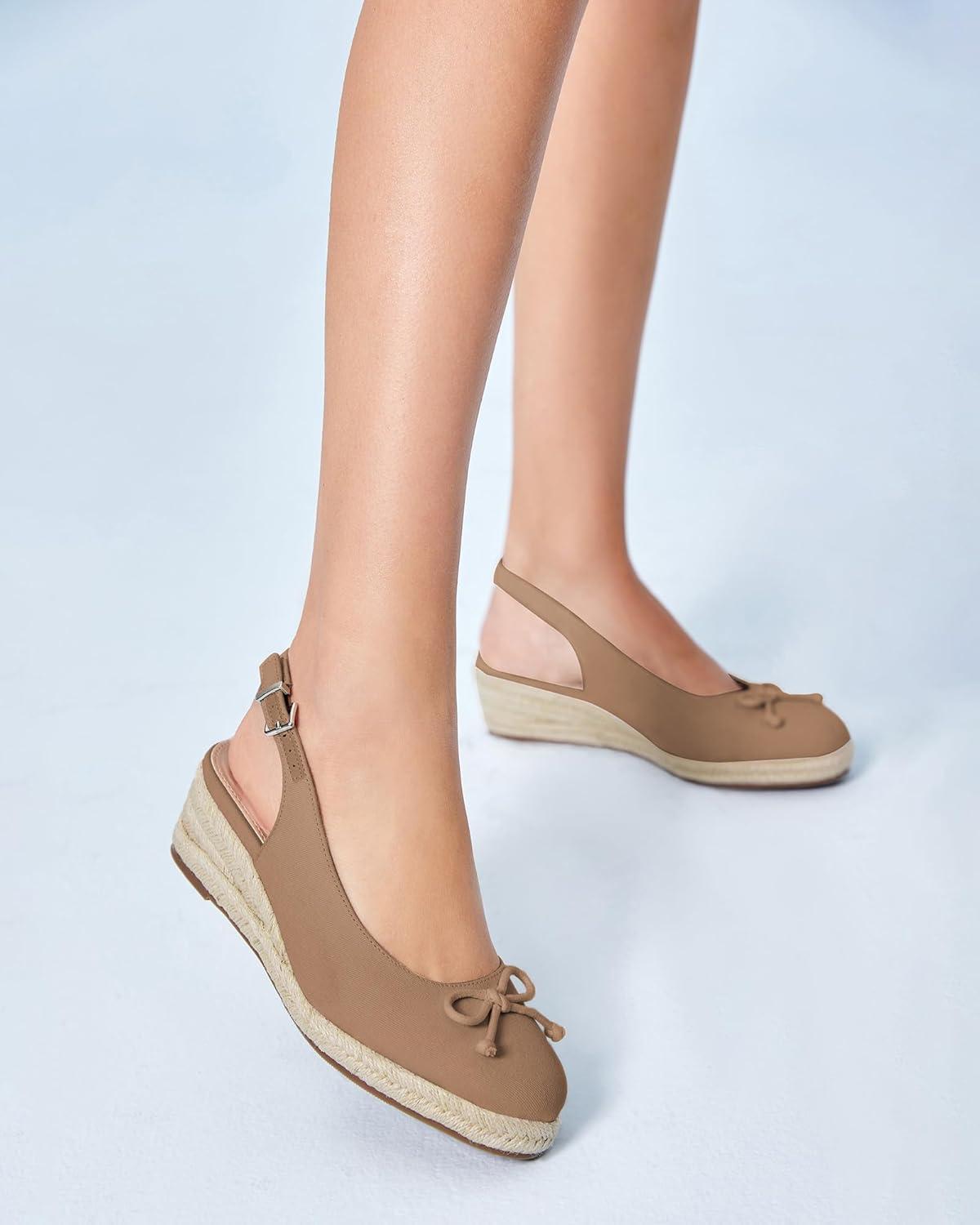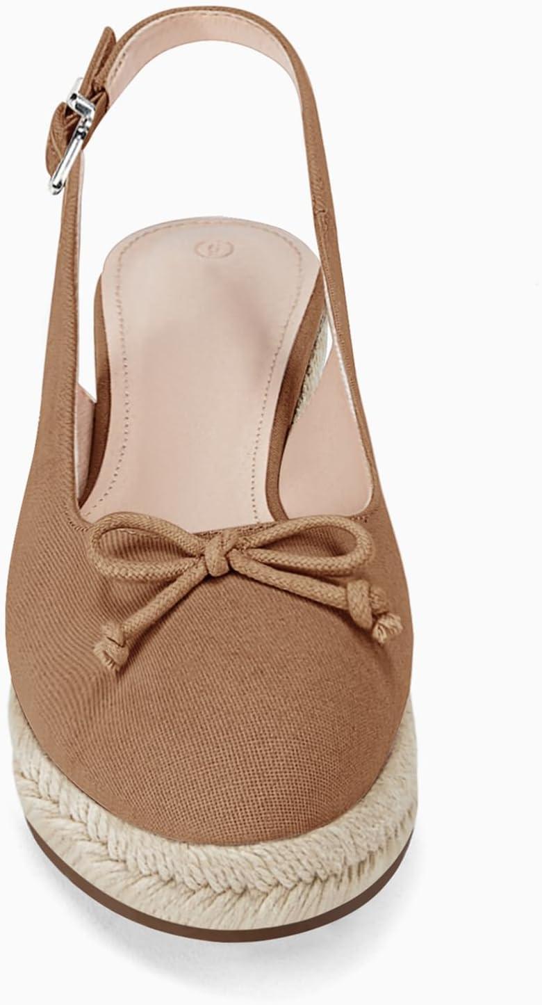 Womens Closed Toe Espadrilles Wedges Shoes Platform Slingback Mid Low Heel Canvas Bow Dress Sandals(Coffee)