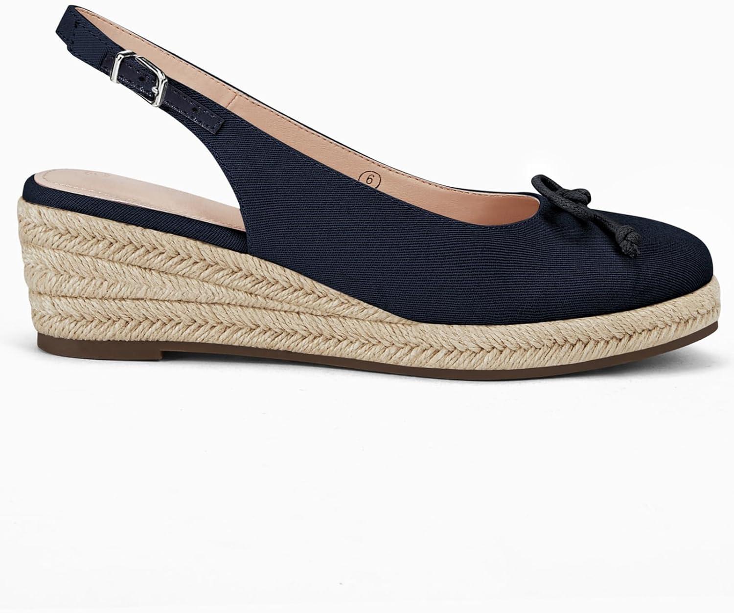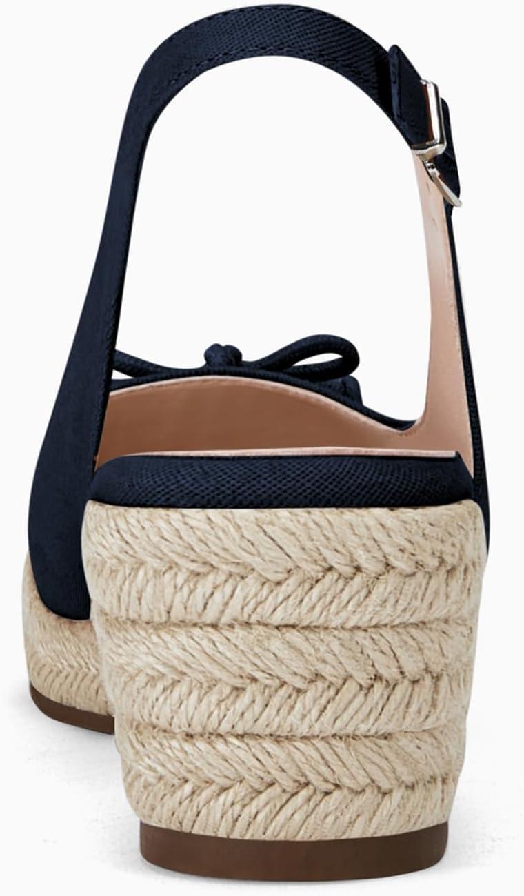 Womens Closed Toe Espadrilles Wedges Shoes Platform Slingback Mid Low Heel Canvas Bow Dress Sandals(Navy)