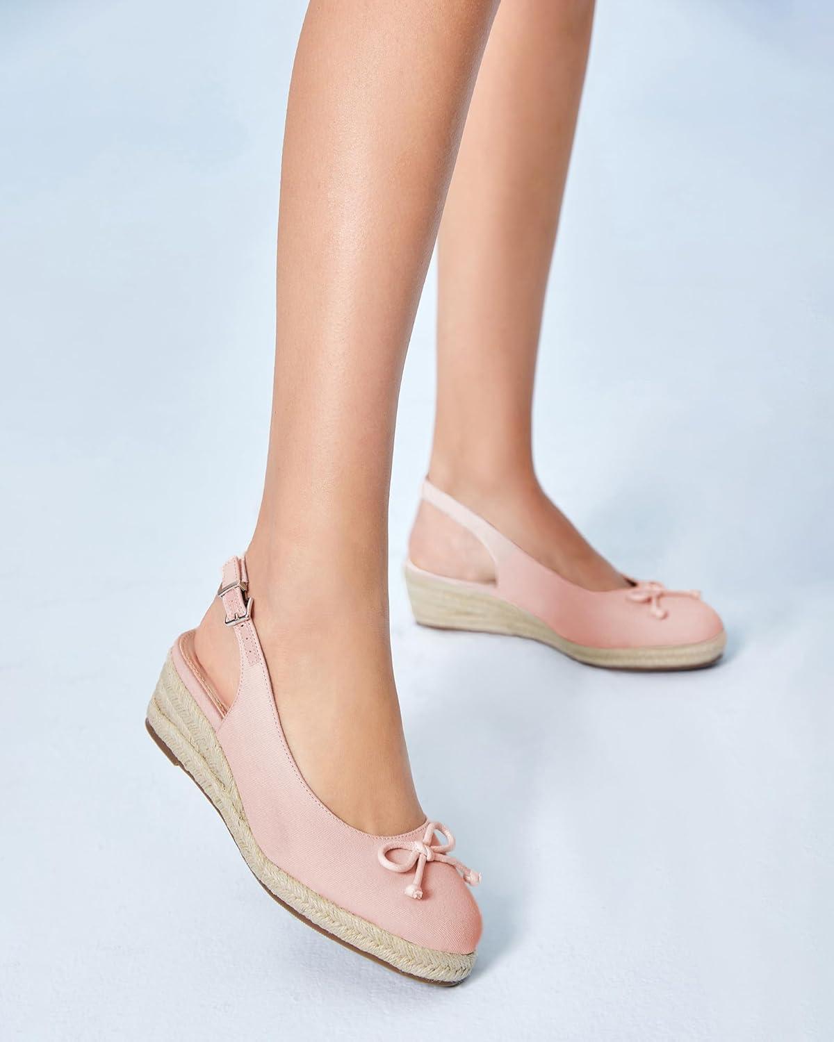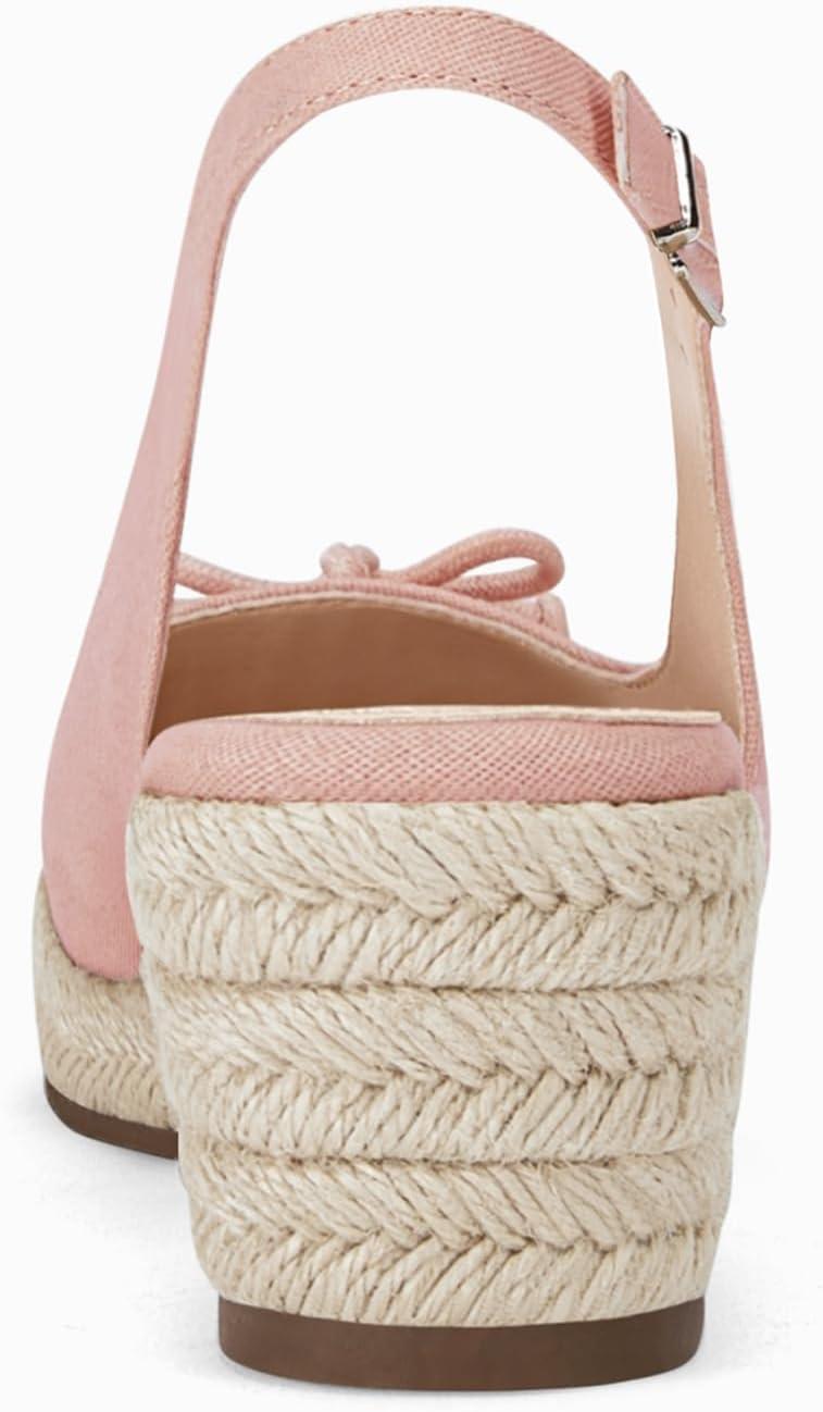 Womens Closed Toe Espadrilles Wedges Shoes Platform Slingback Mid Low Heel Canvas Bow Dress Sandals(Pink)
