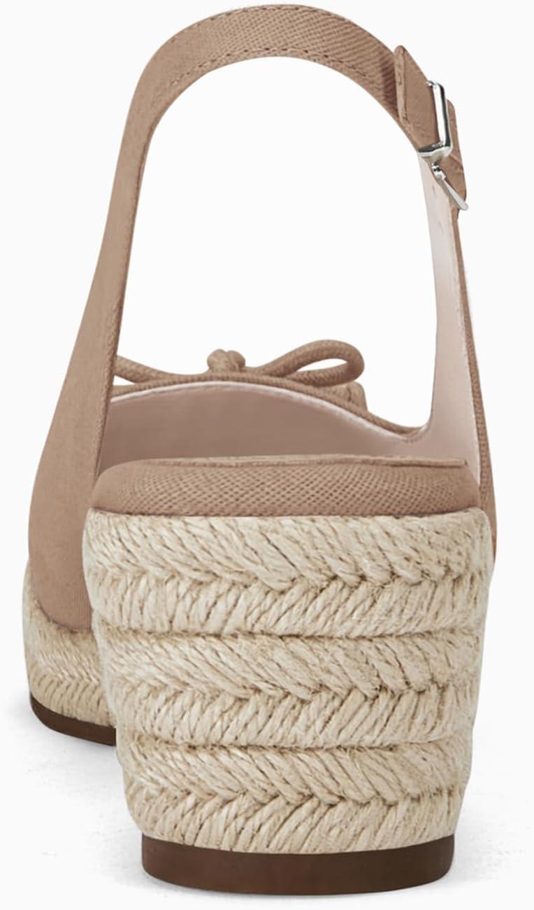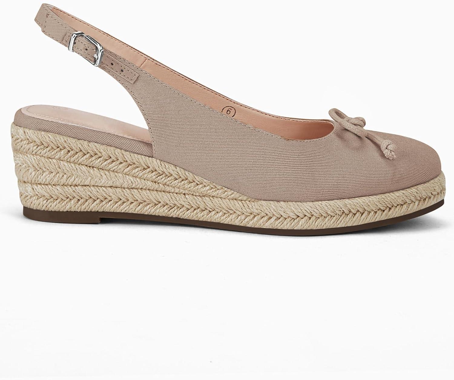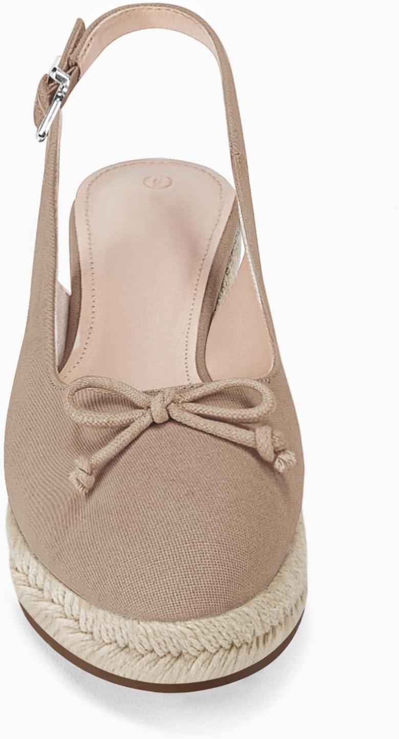 Womens Closed Toe Espadrilles Wedges Shoes Platform Slingback Mid Low Heel Canvas Bow Dress Sandals(Taupe)