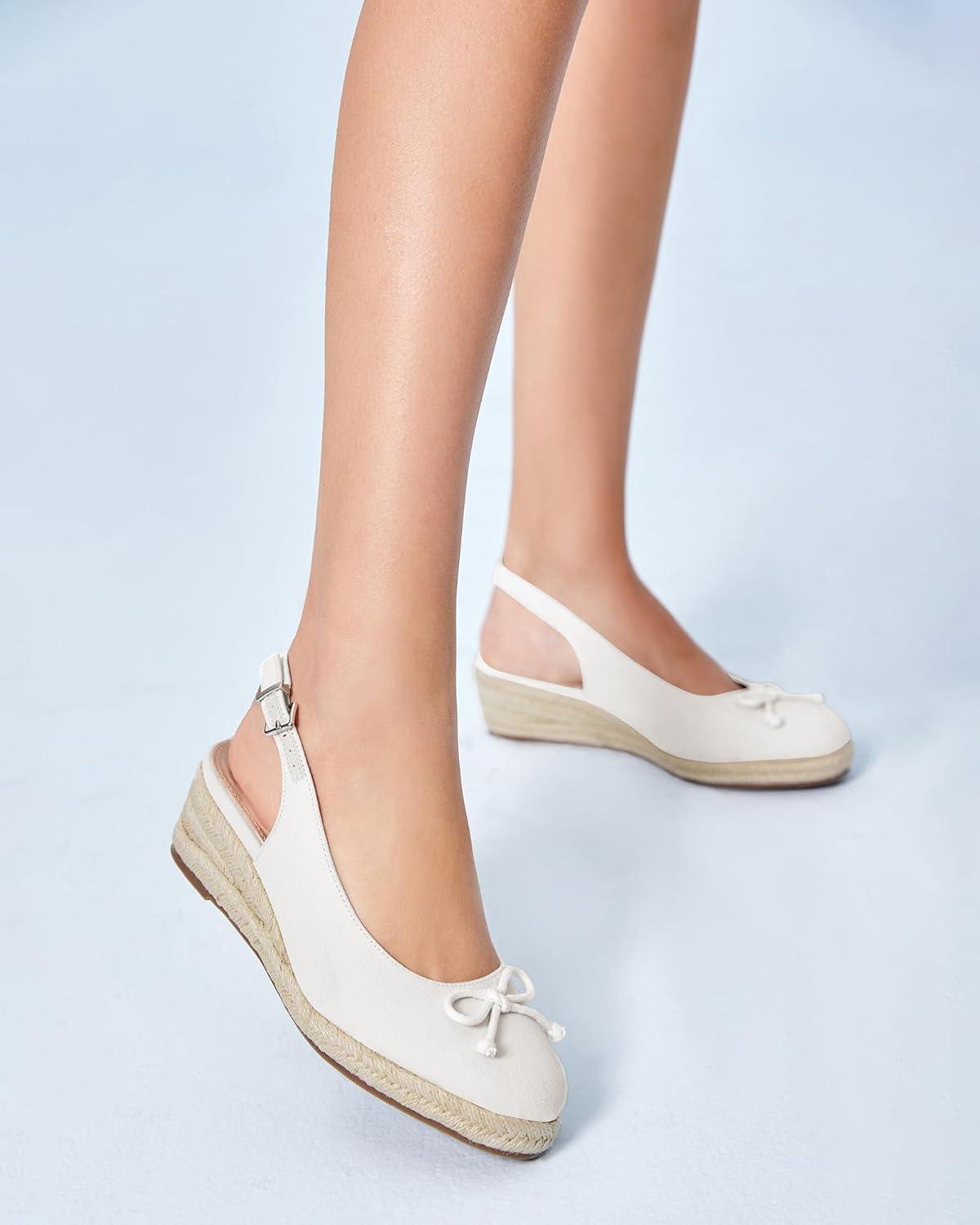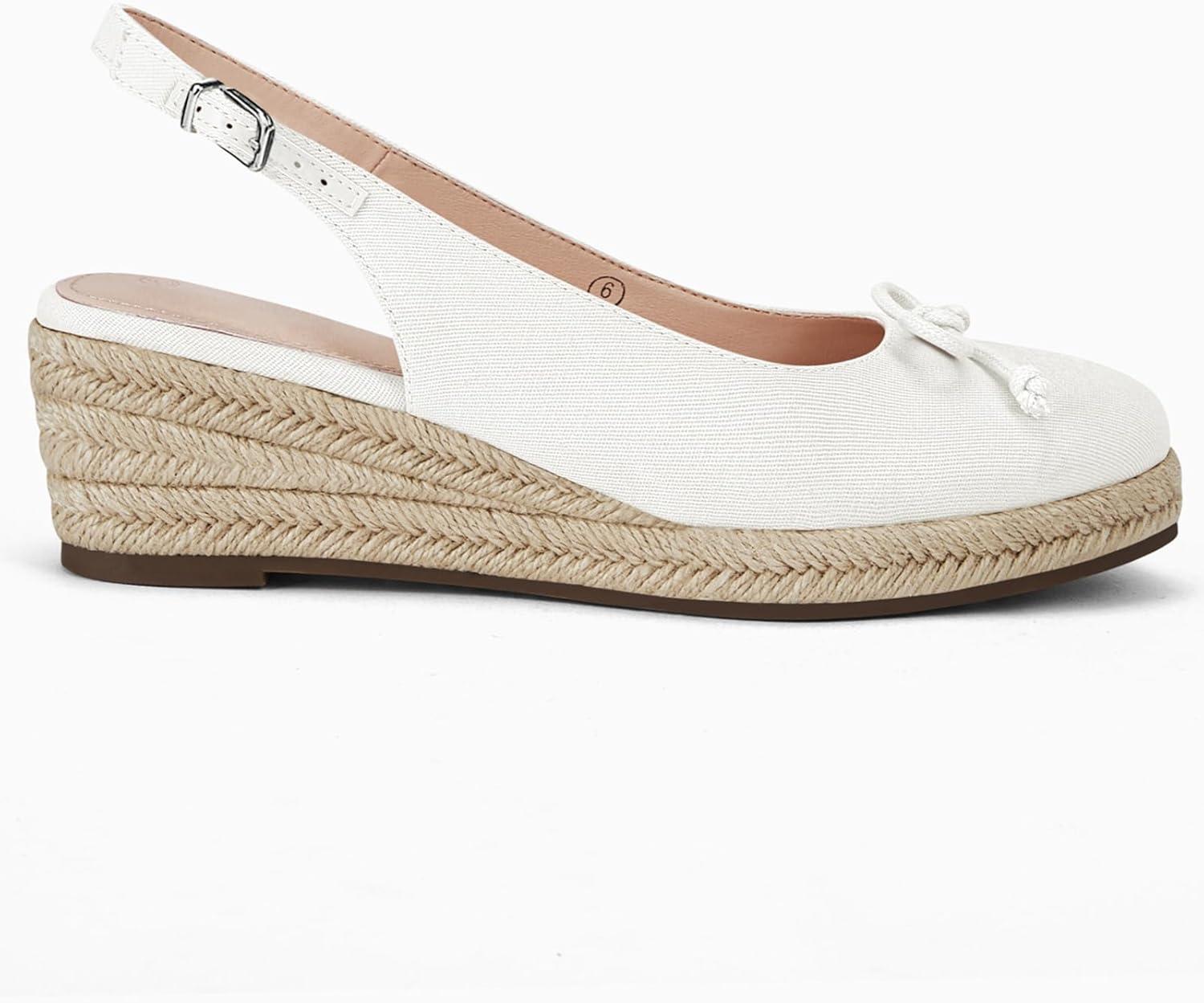 Womens Closed Toe Espadrilles Wedges Shoes Platform Slingback Mid Low Heel Canvas Bow Dress Sandals(White)