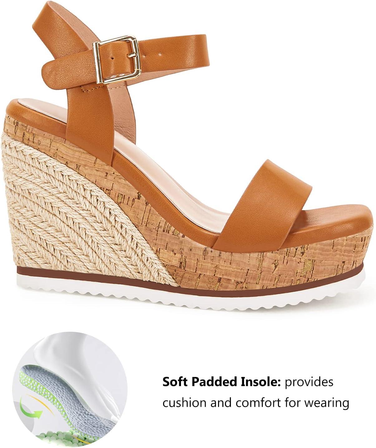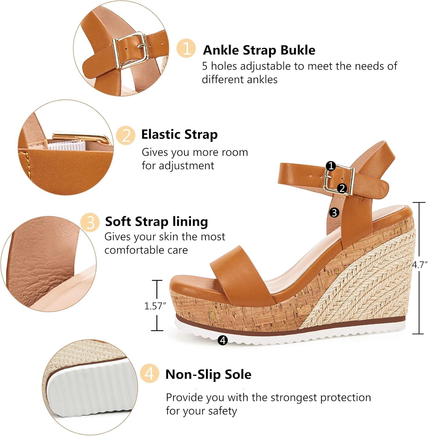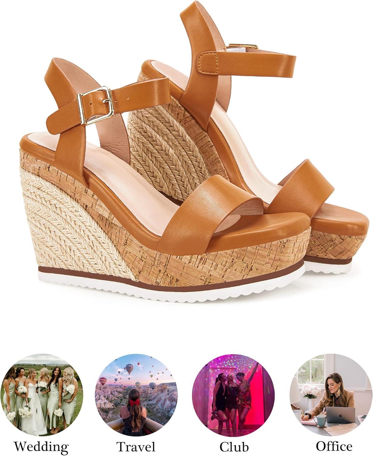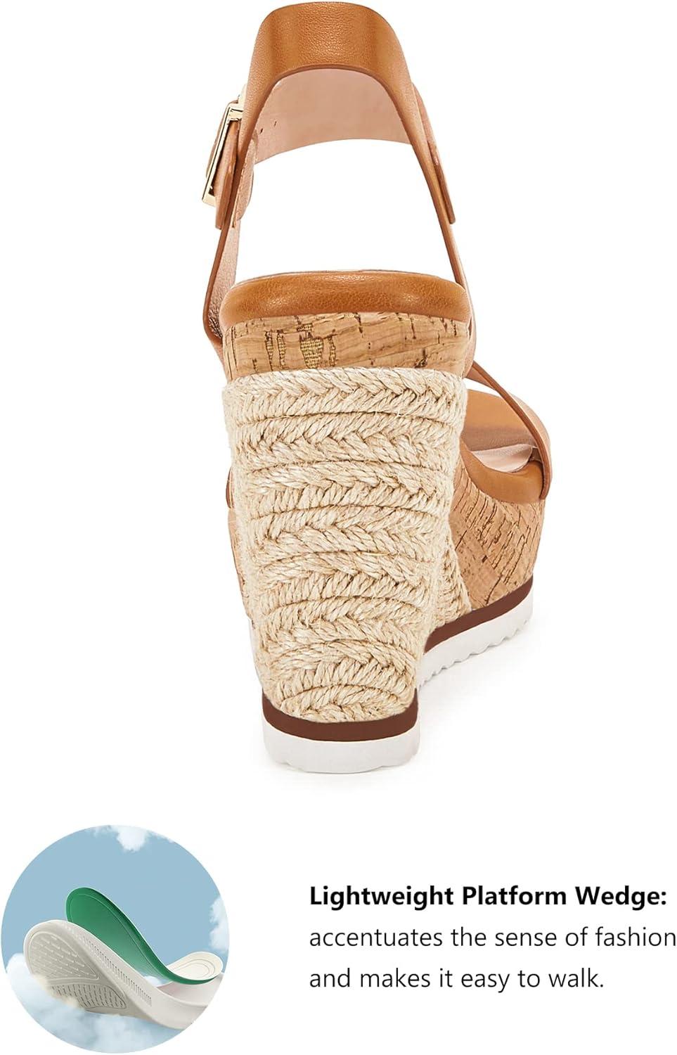 Women’s Espadrille Wedge Platform Sandals Open Toe Ankle Buckle Strap Casual Summer Shoes(02 Brown)