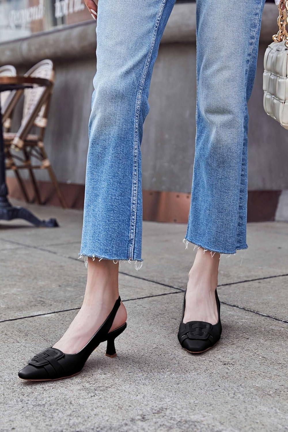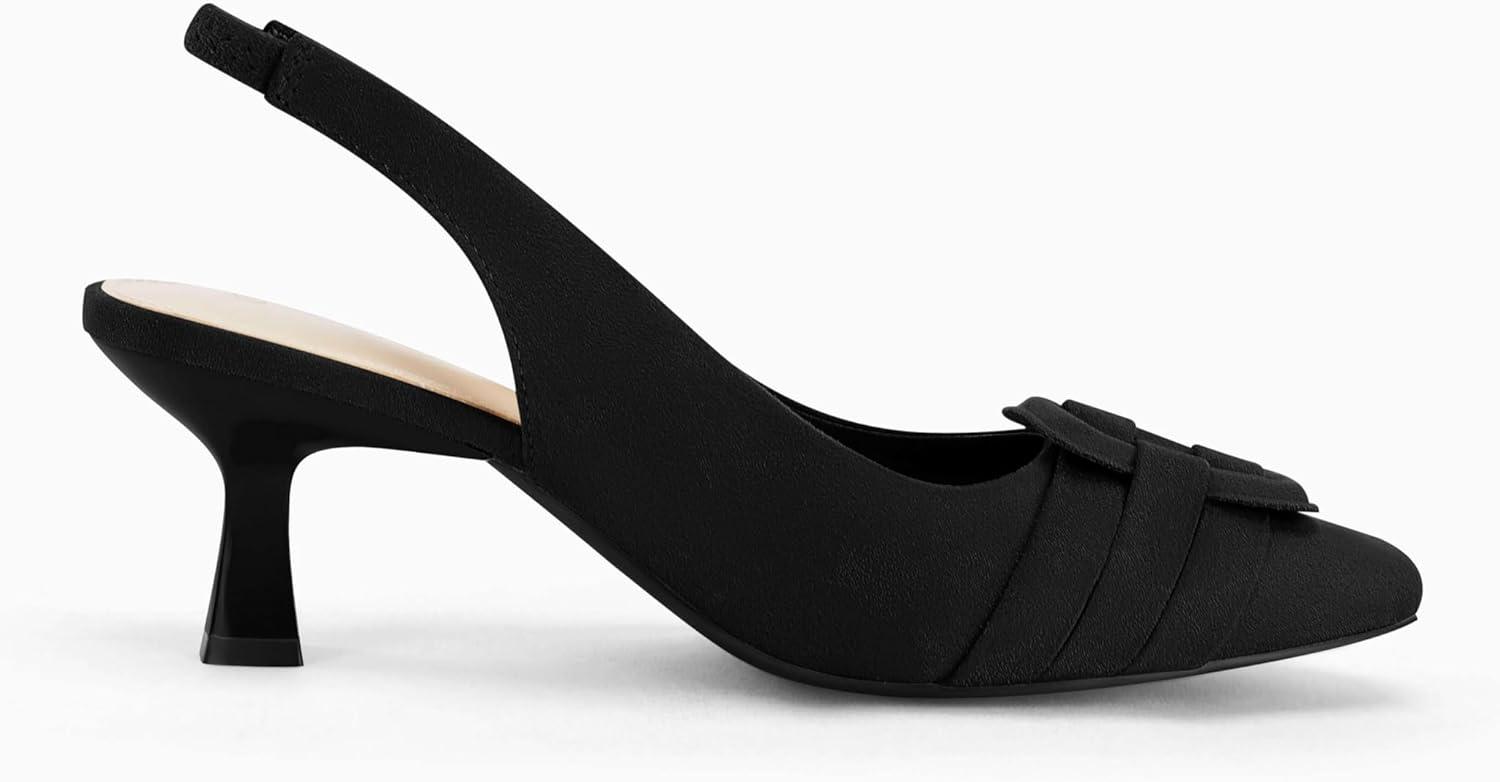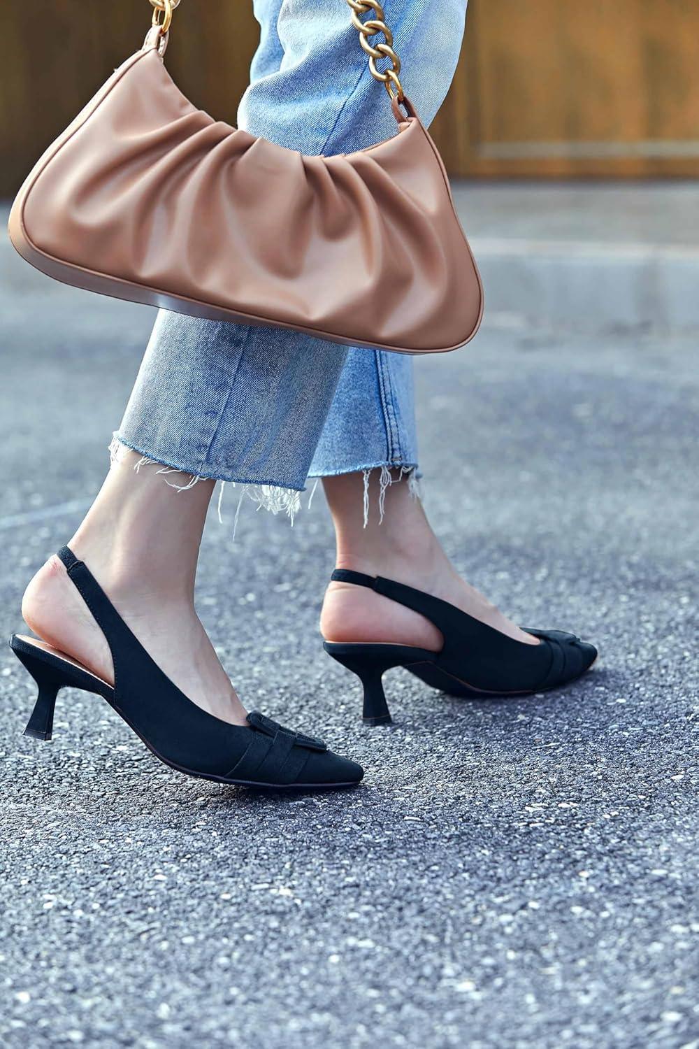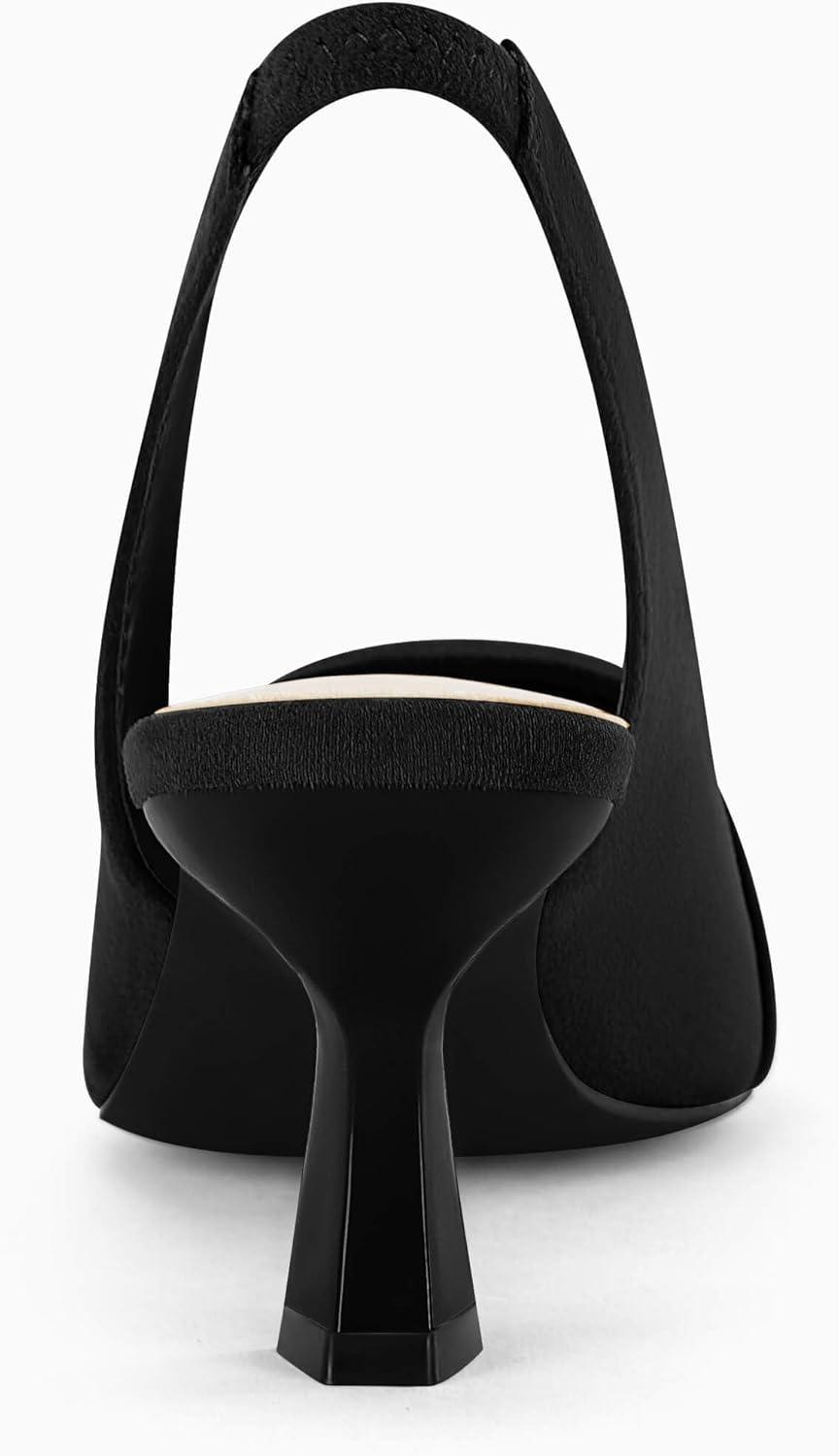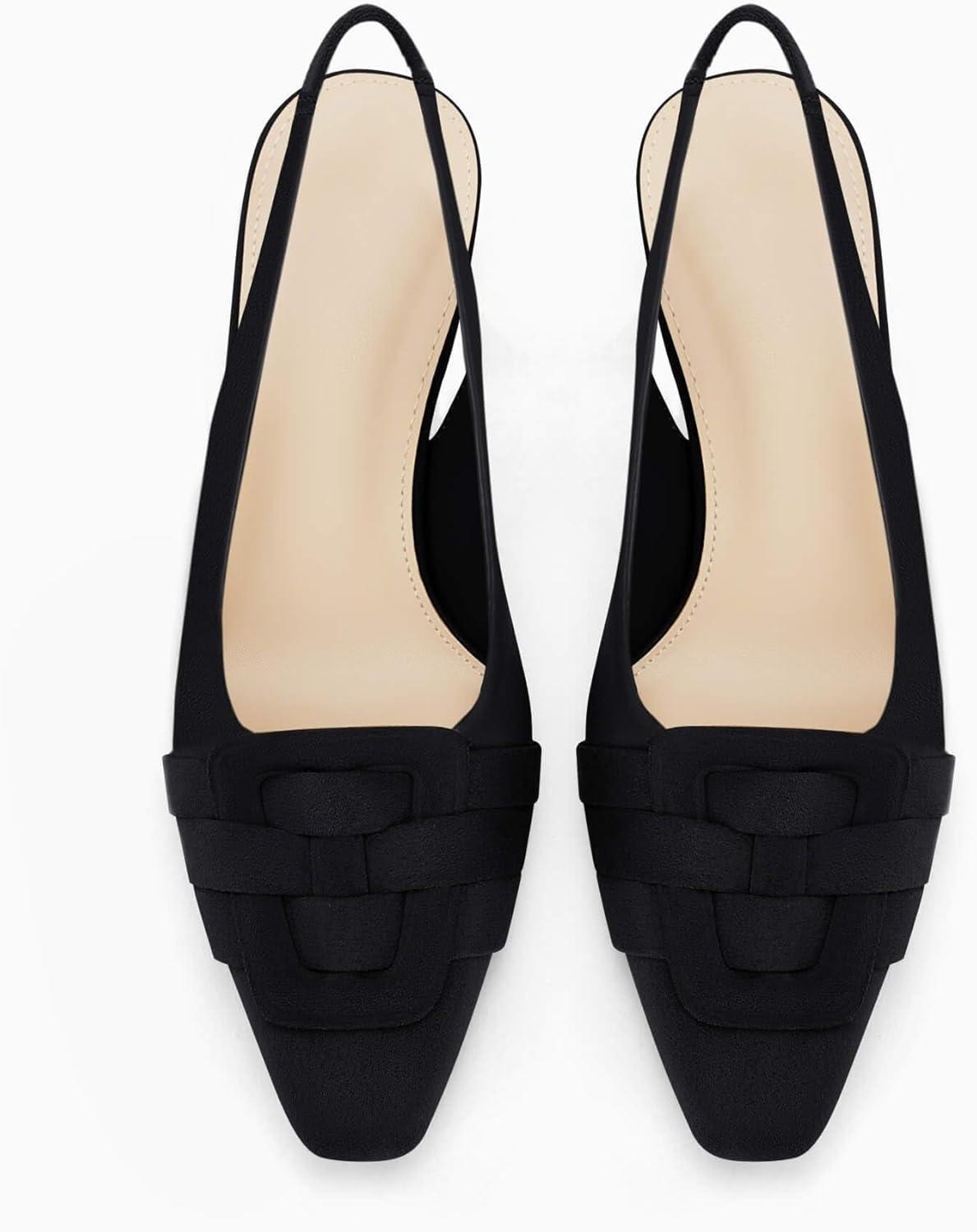 Womens Sling Back Kitten Heels Low Dress Shoes Slingback Pumps Pointed Closed Toe Comfortable Party Office Sandals(Black(suede))