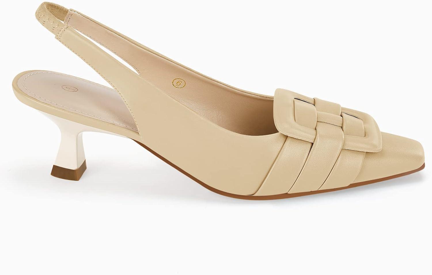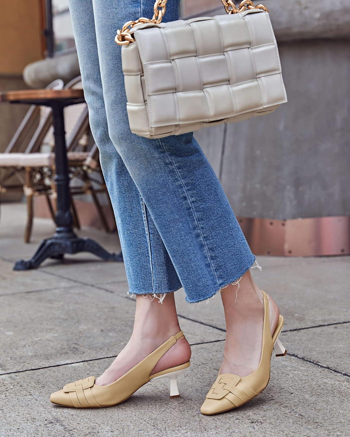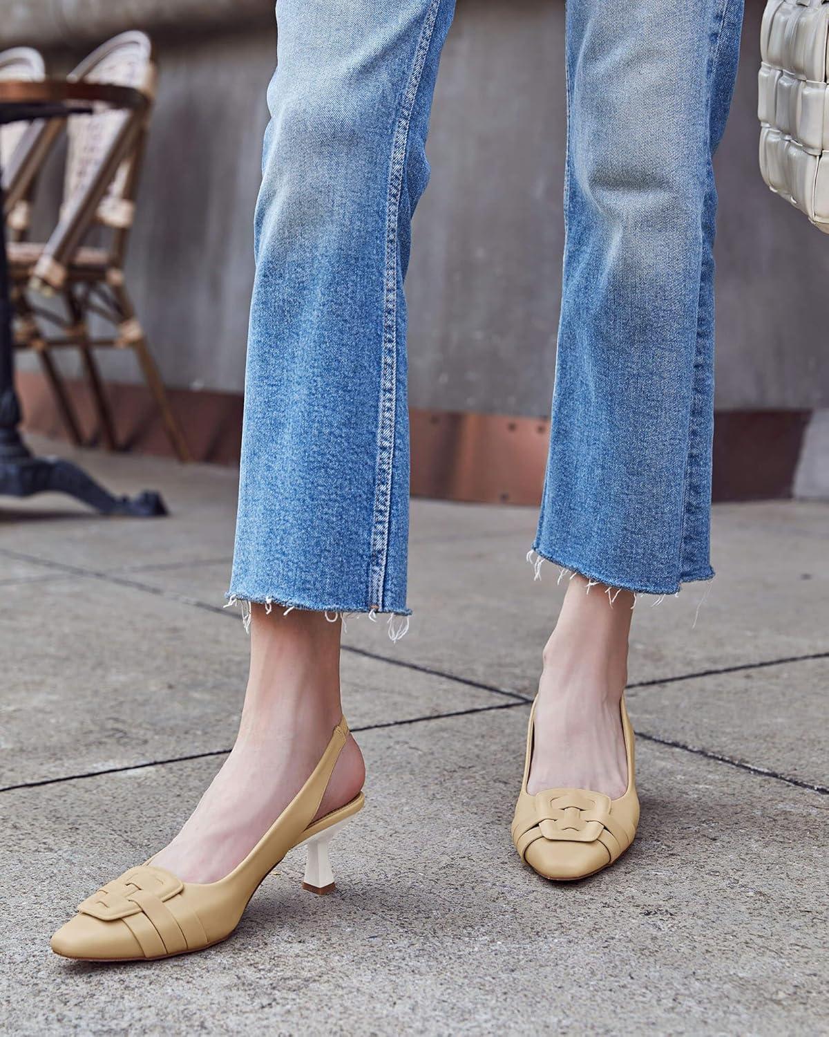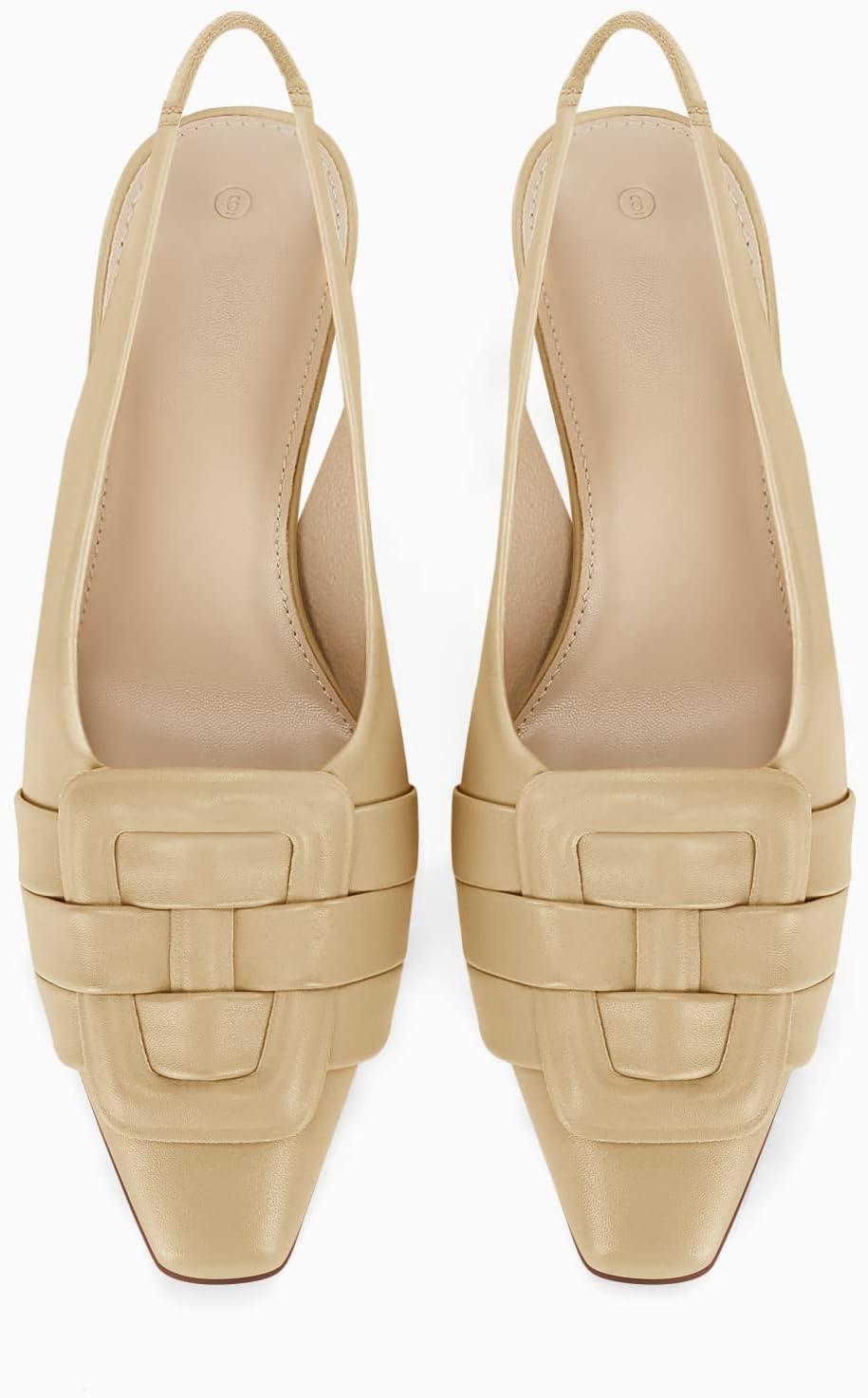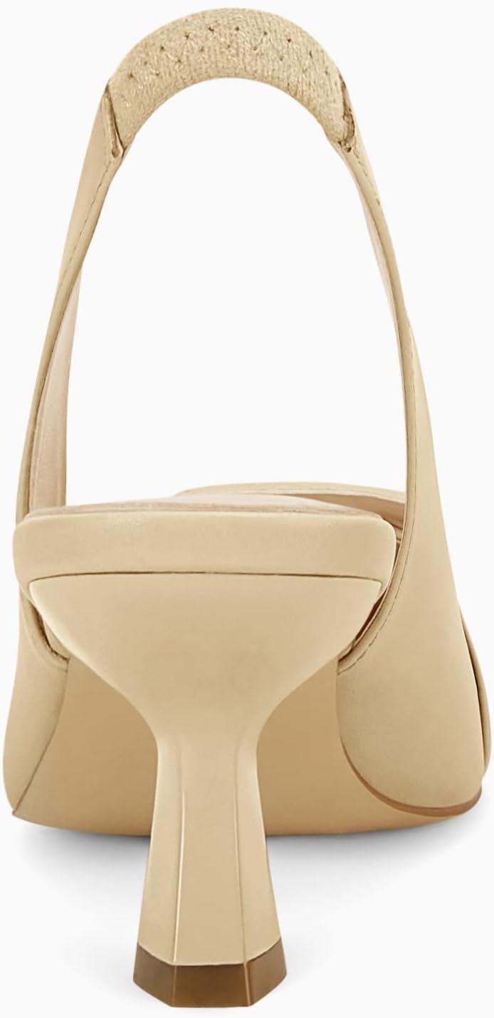 Womens Sling Back Kitten Heels Low Dress Shoes Slingback Pumps Pointed Closed Toe Comfortable Party Office Sandals(Khaki(pu))