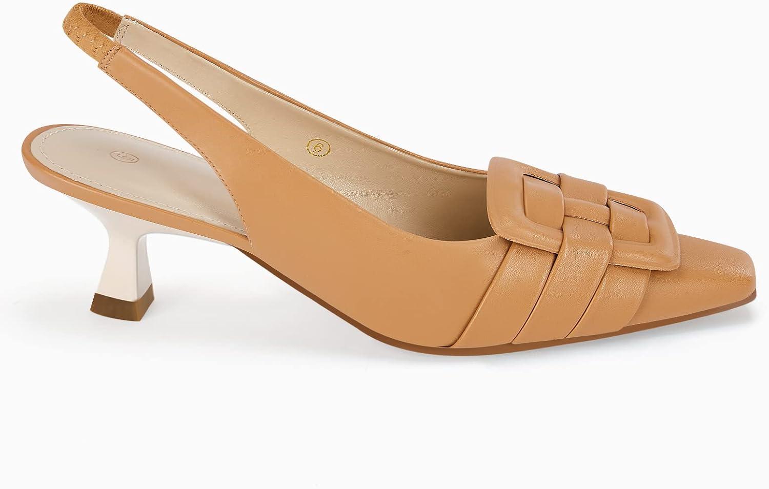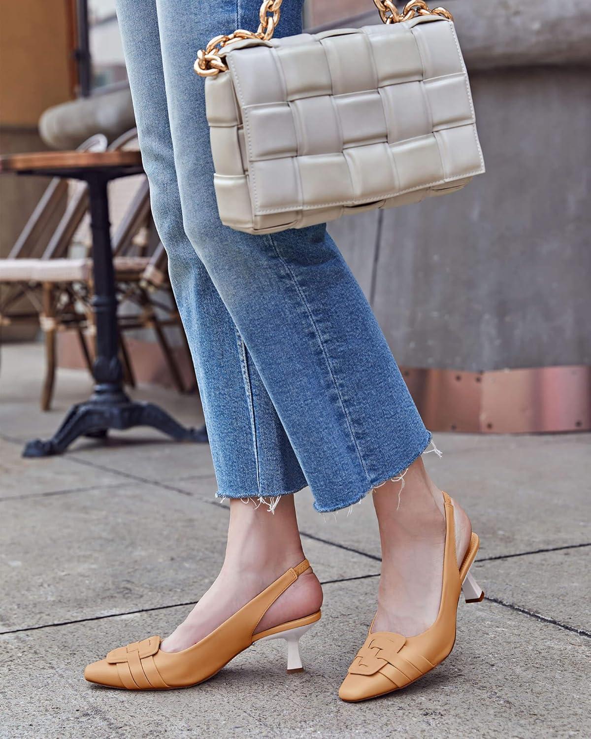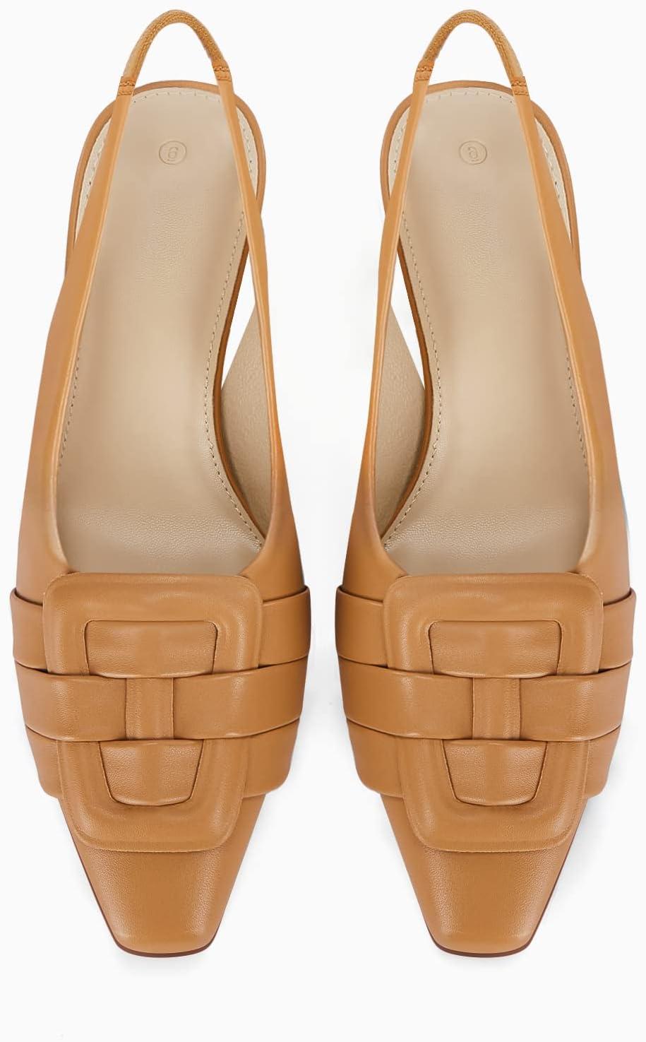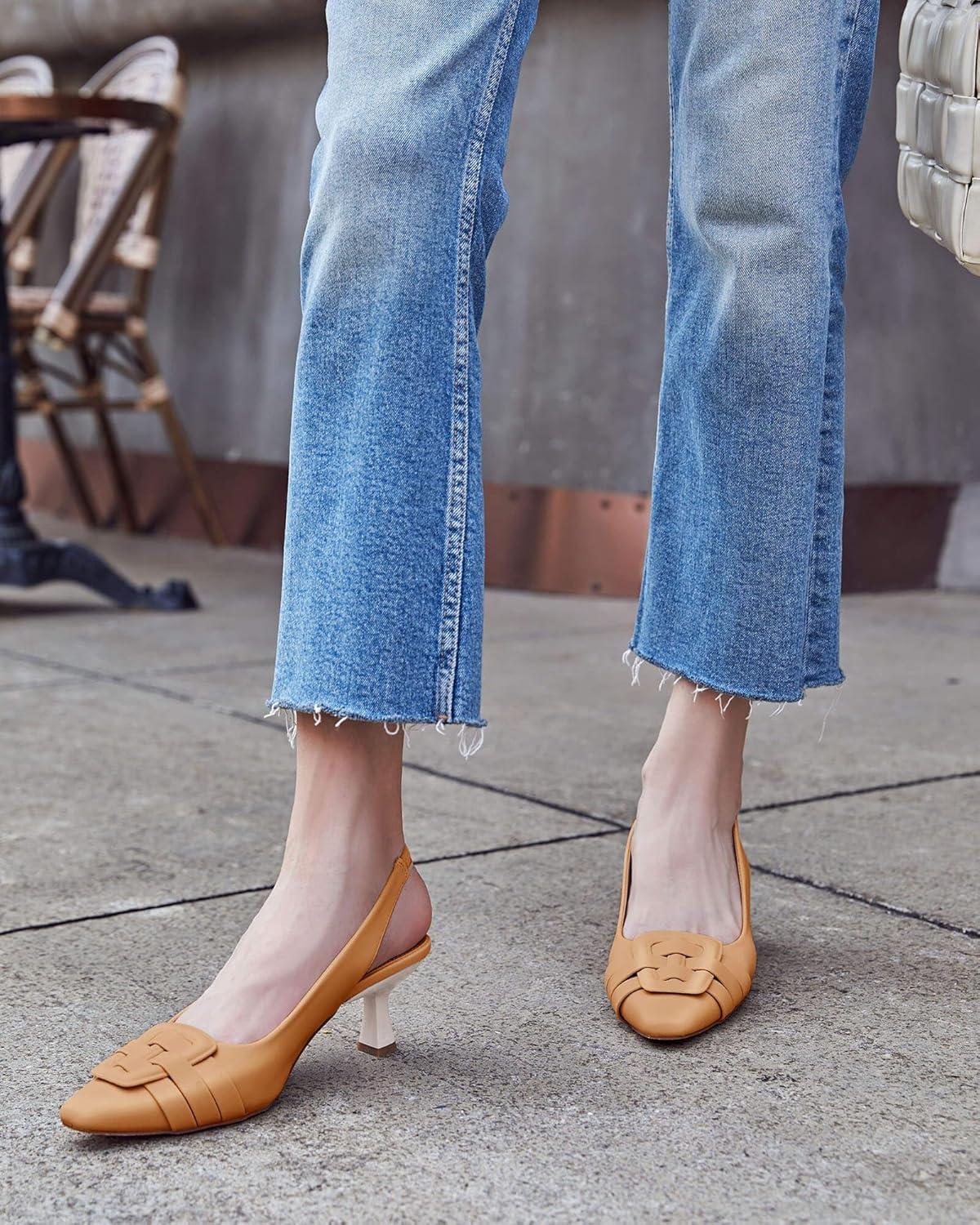 Womens Sling Back Kitten Heels Low Dress Shoes Slingback Pumps Pointed Closed Toe Comfortable Party Office Sandals(Light Brown(pu))
