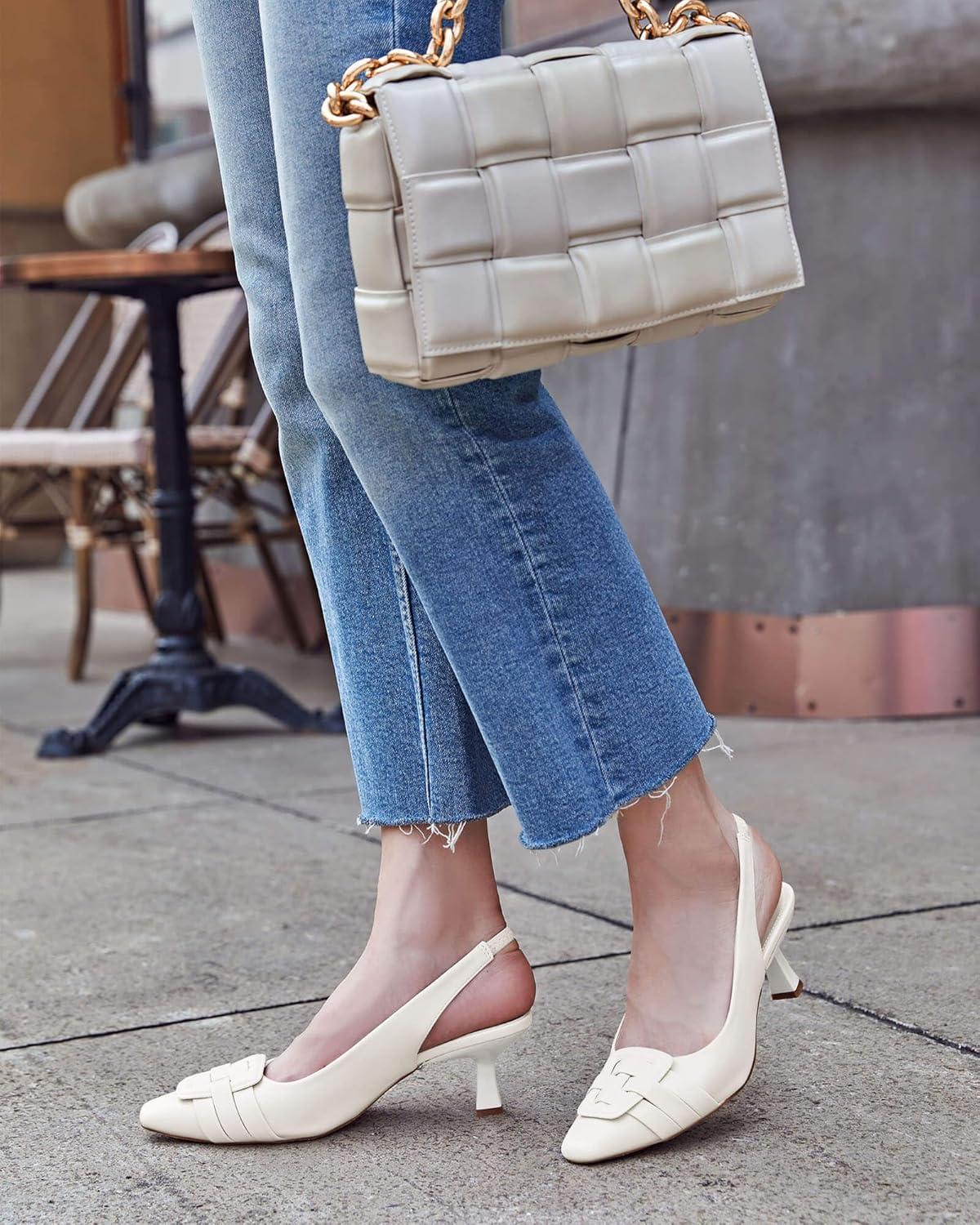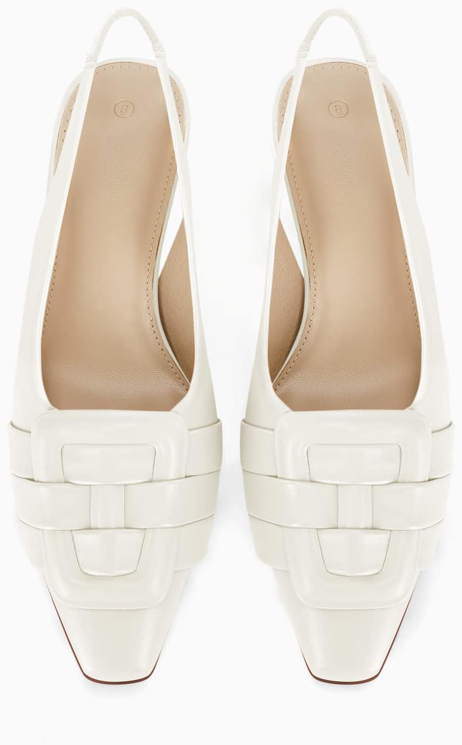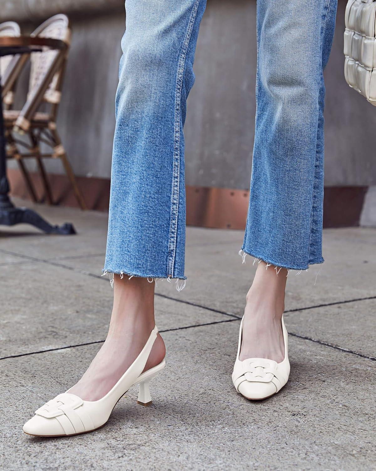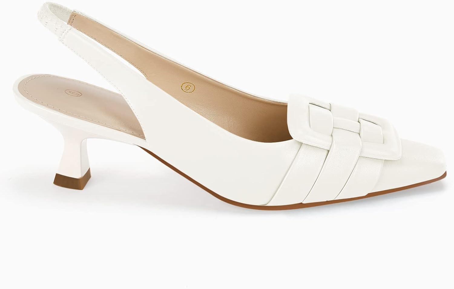 Womens Sling Back Kitten Heels Low Dress Shoes Slingback Pumps Pointed Closed Toe Comfortable Party Office Sandals(White(pu))
