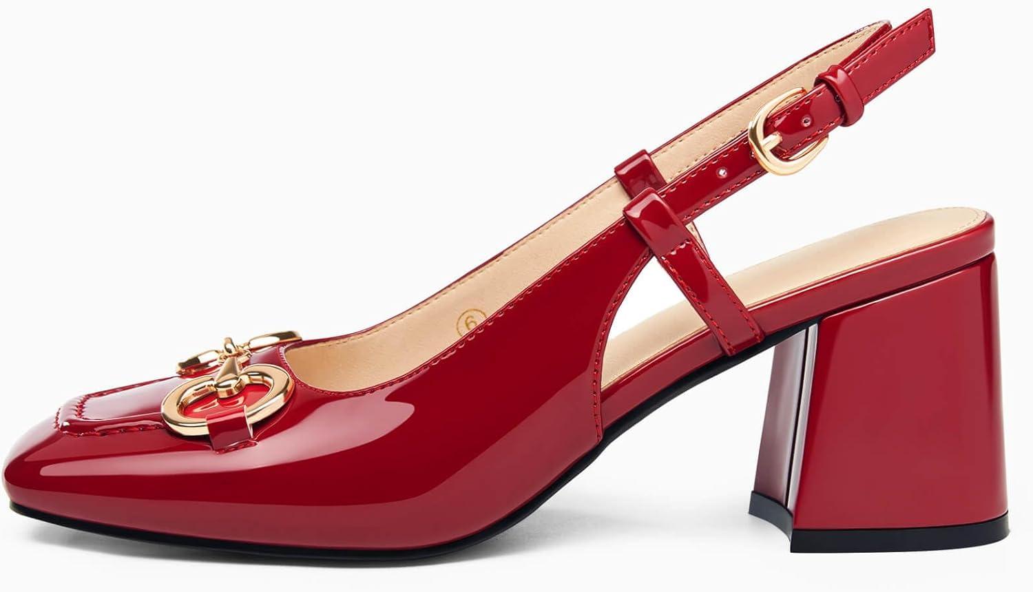 Don’t miss out on our limited-time offer: get a free {accessory} with your purchase of Womens Slingback Block Heels Closed Square Toe Dress Work Shoes Slip on Buckle Strap Business Pumps(Red).