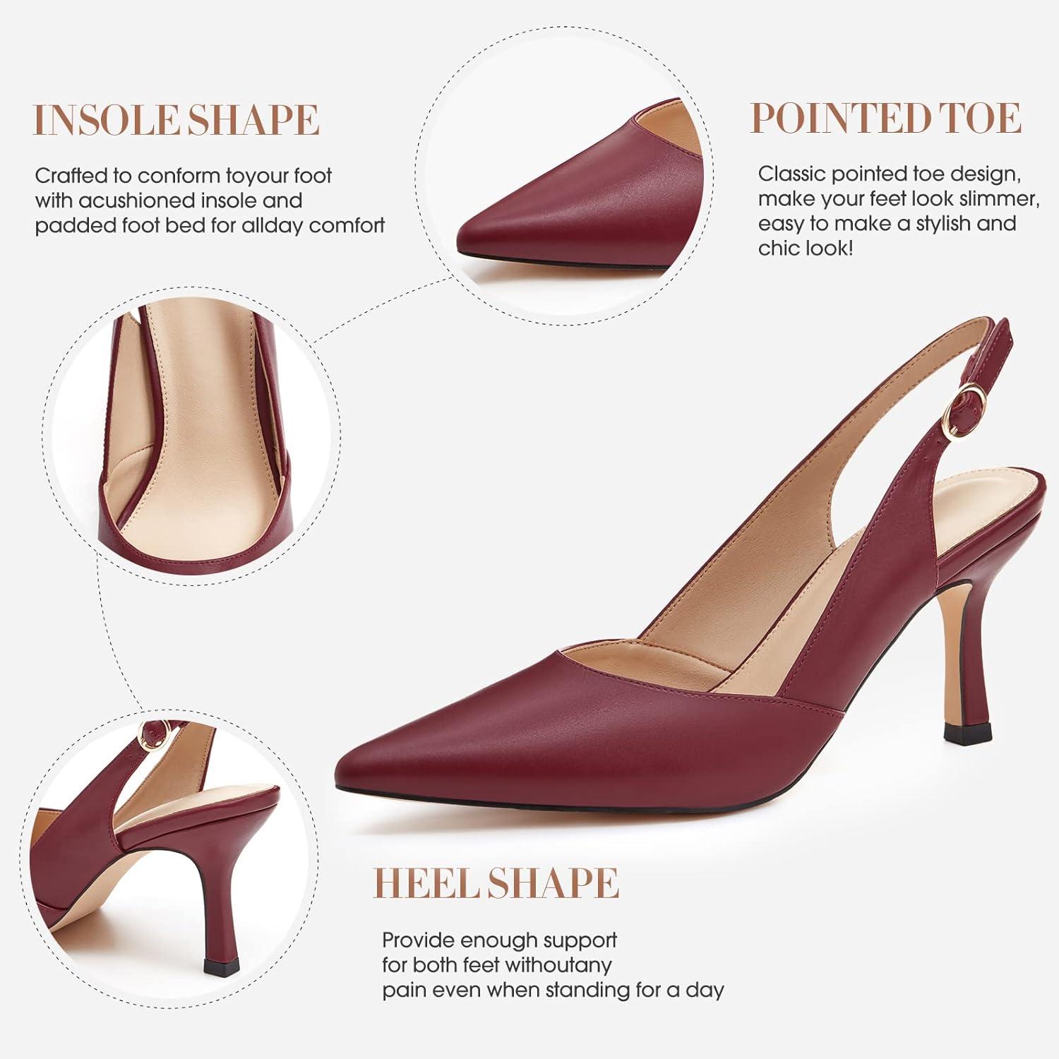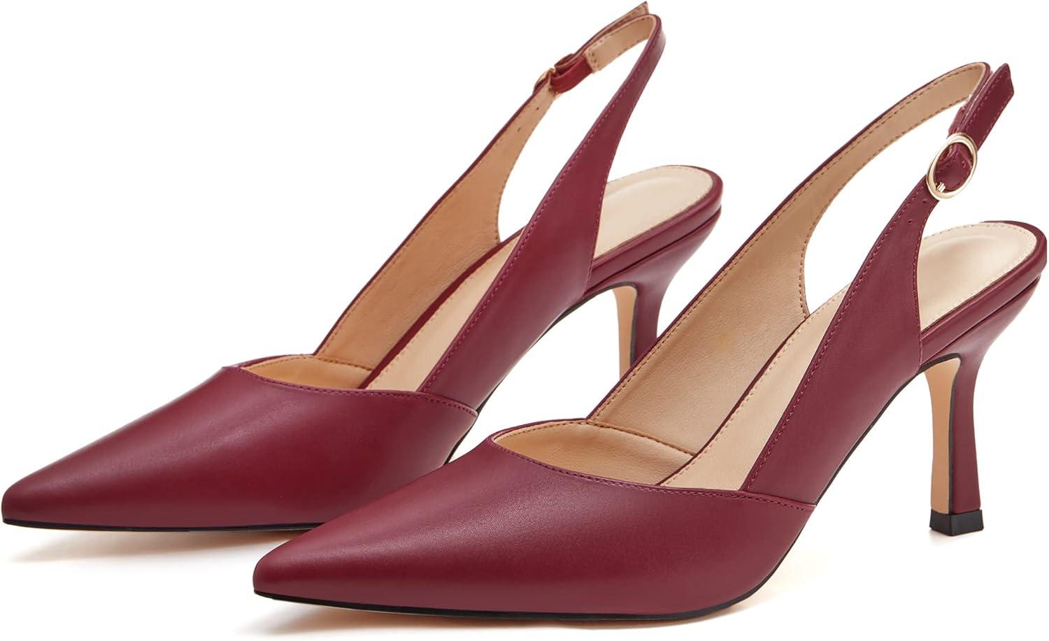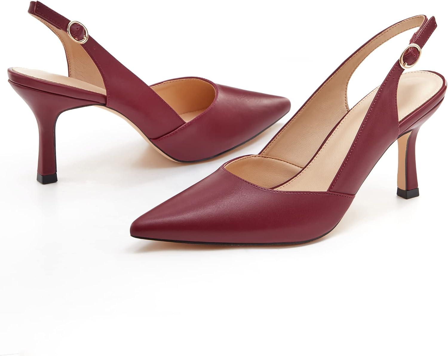 Women’s Slingback Kitten Heels Closed Pointed Toe Backless Wedding Party Dress Pumps Shoes(Red)